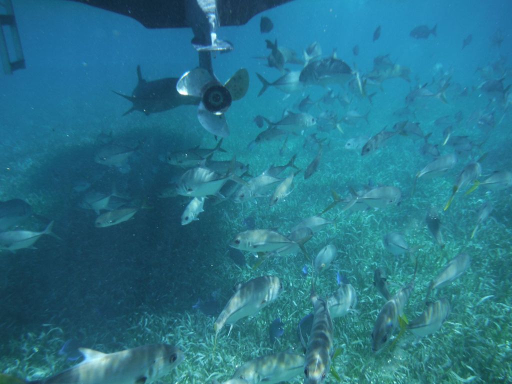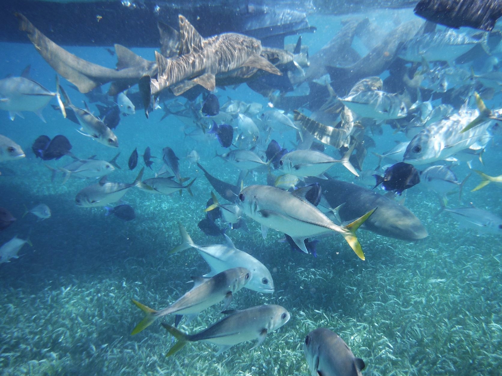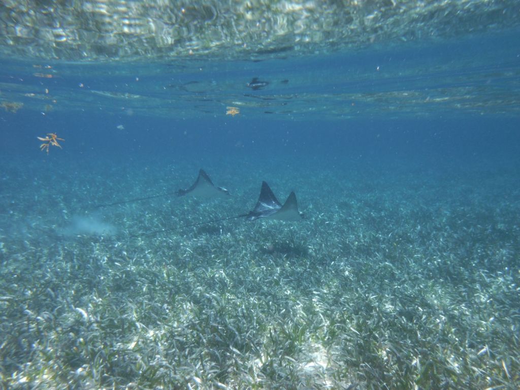 Shark Ray Alley was – believe it or not! – filled with nurse sharks, rays, and fish. It was a bit shallow here as well so we could get a really close look at the rays gliding along the sea floor below us.