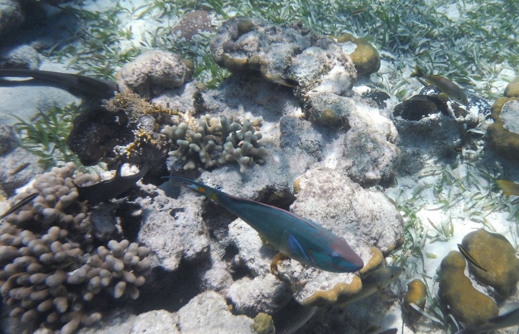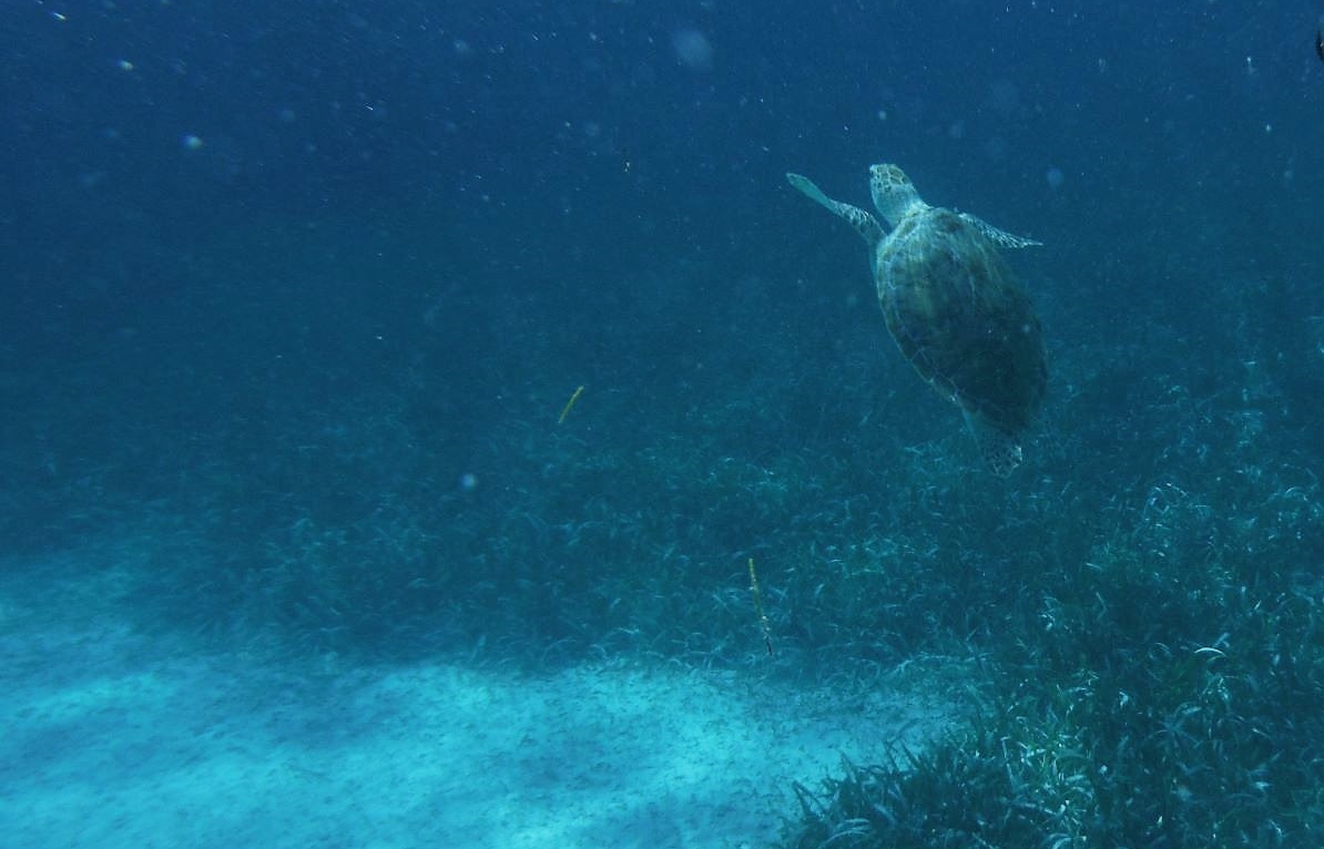 While I really enjoyed floating over small nurse sharks, giant sting rays, and countless conch shells, the highlight for me was watching a large sea turtle eating and occasionally swimming to the surface for air.