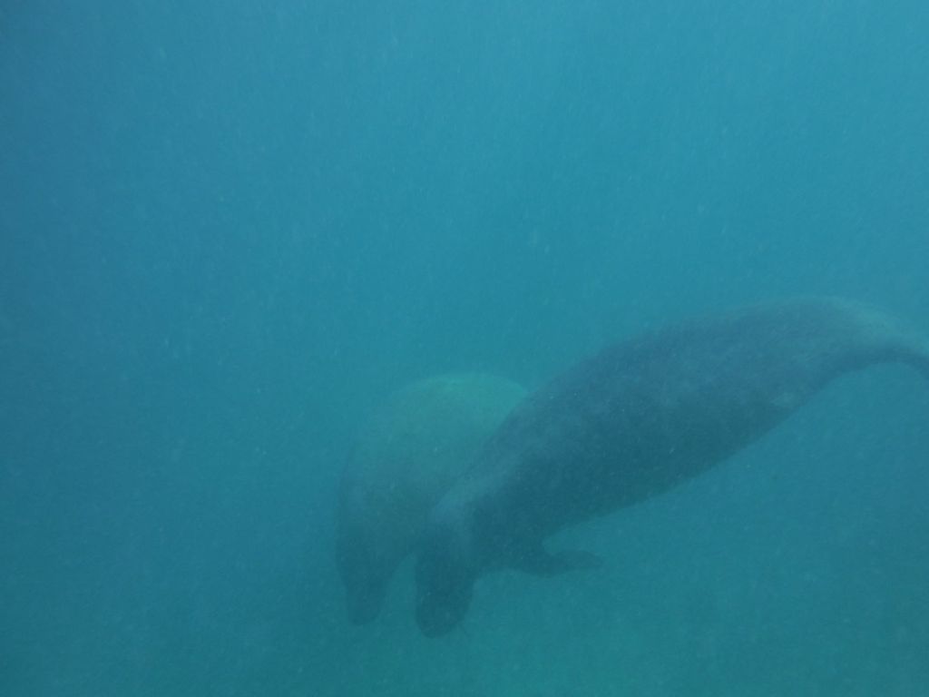 Although I was tired, I got really excited when our guides learned from another boat that there were manatee nearby. The sped us over to the spot, had us quickly return to the water, and we all swam as fast as we could toward two giant manatee that were slowly moving away from us.