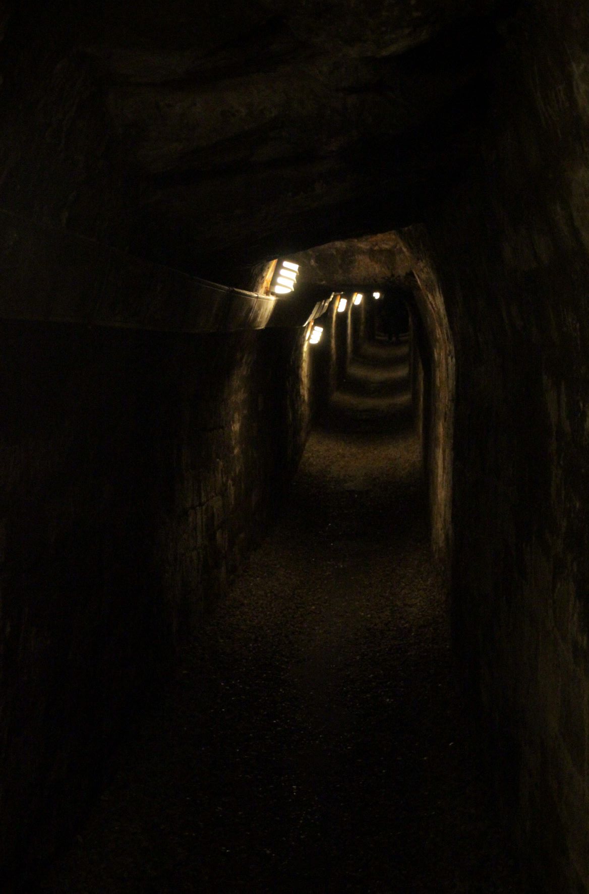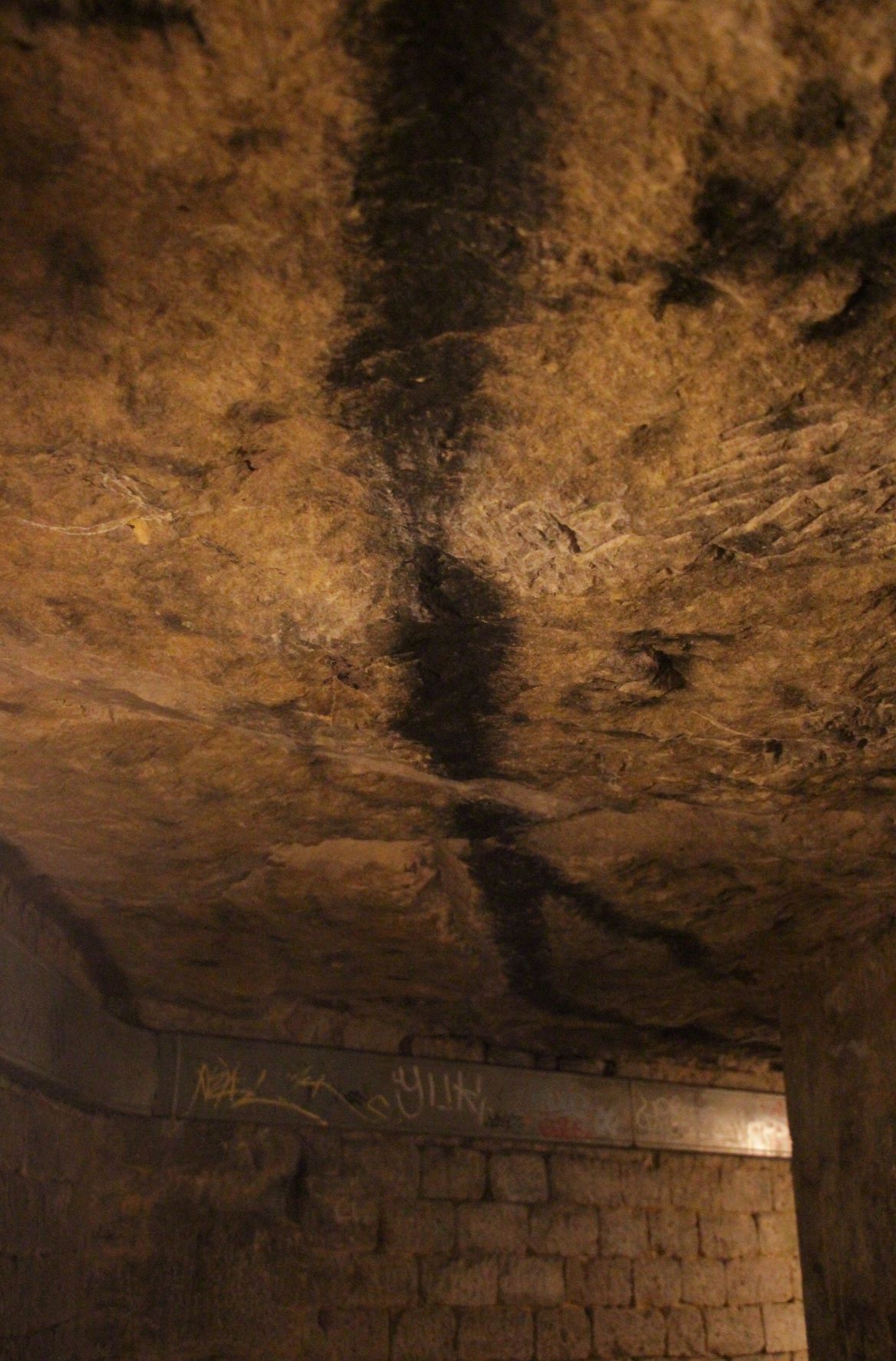 From here, I entered the tunnels, pausing to read about keyholes they built into the walls to allow air to flow and looking up at the scorch marks along the ceiling, which guided people through the tunnels in the days before electrical lights (both pictured below).