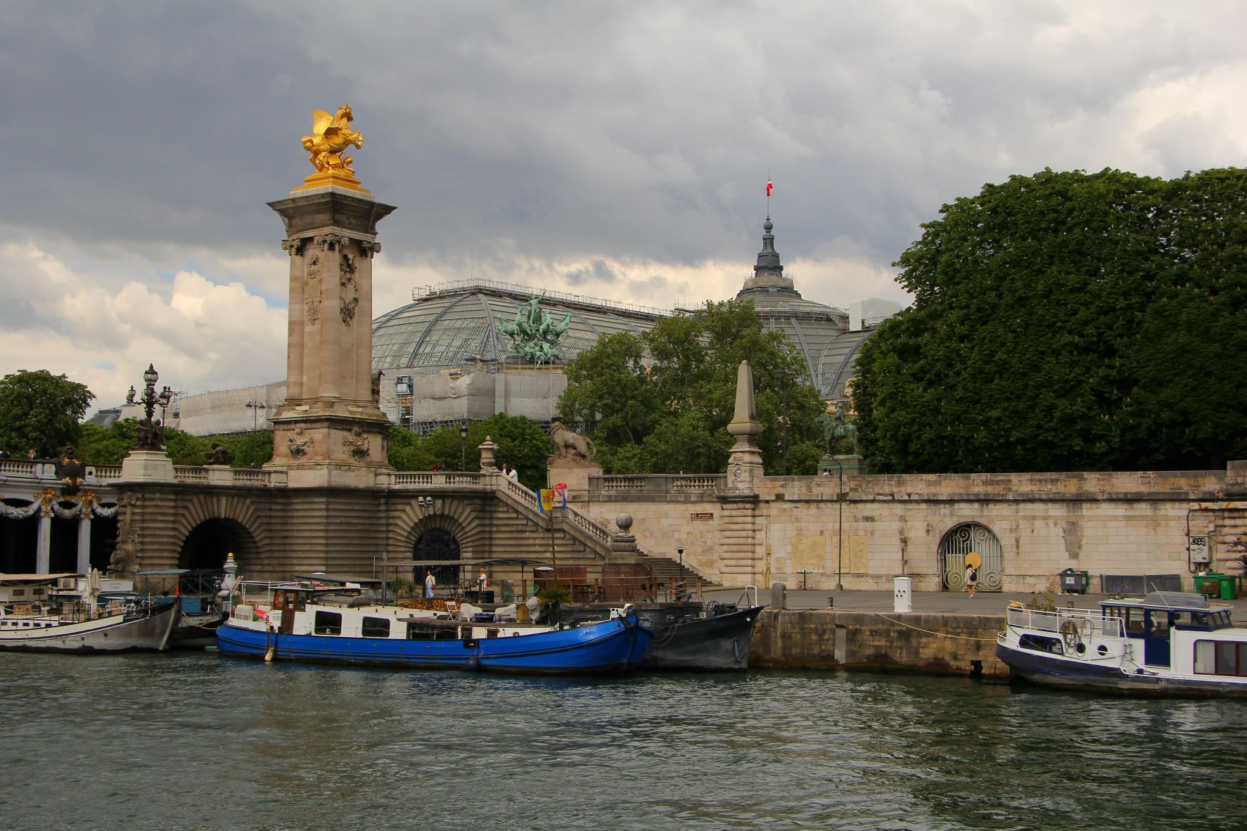 I rode the metro from Montparnasse to Invalides and then walked across the Pont des Invalides to the North Bank and over to the Bateaux-Mouches dock to catch an early afternoon tour. There weren’t too many people on board, and I had a row of seats all to myself.