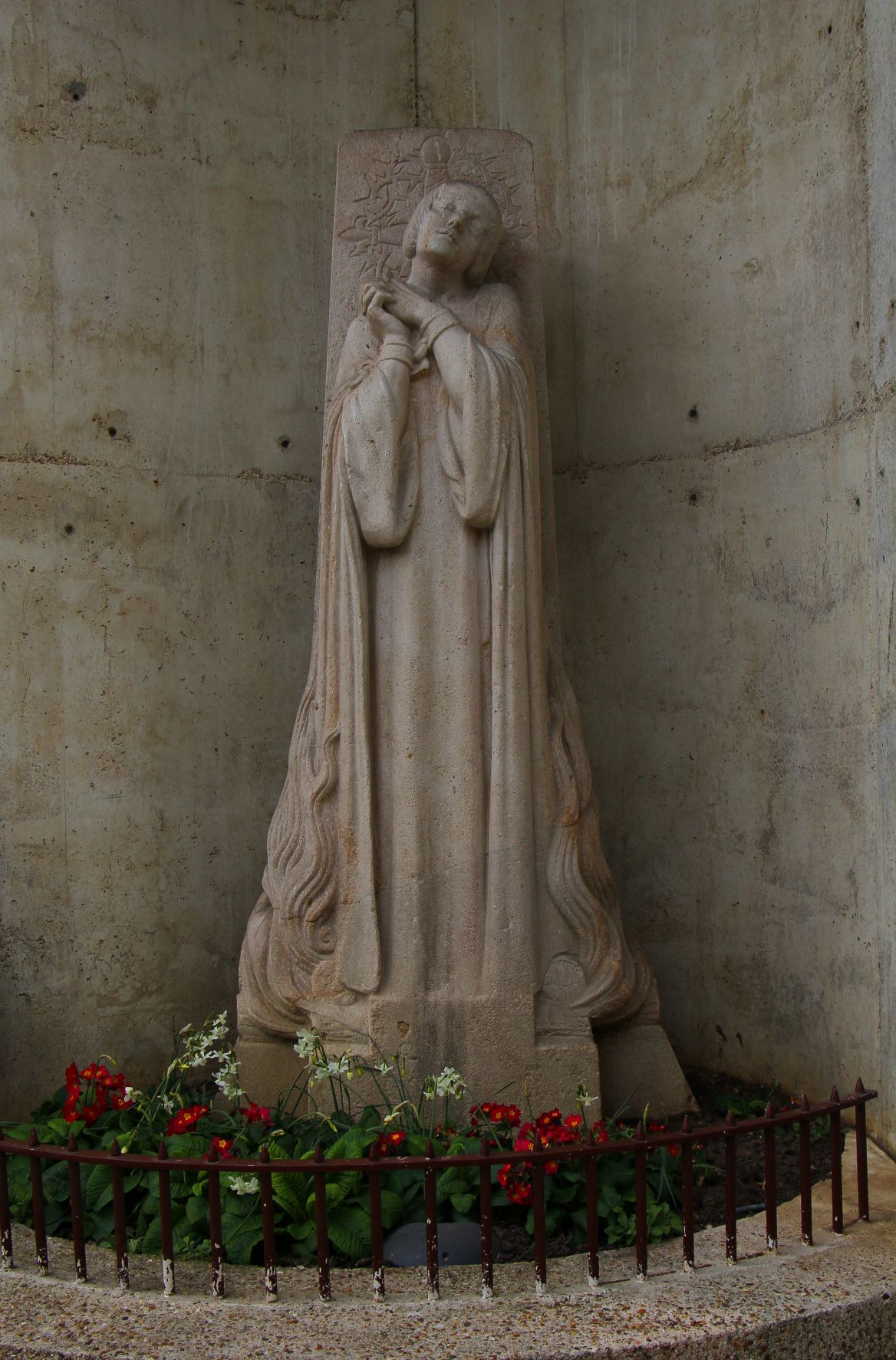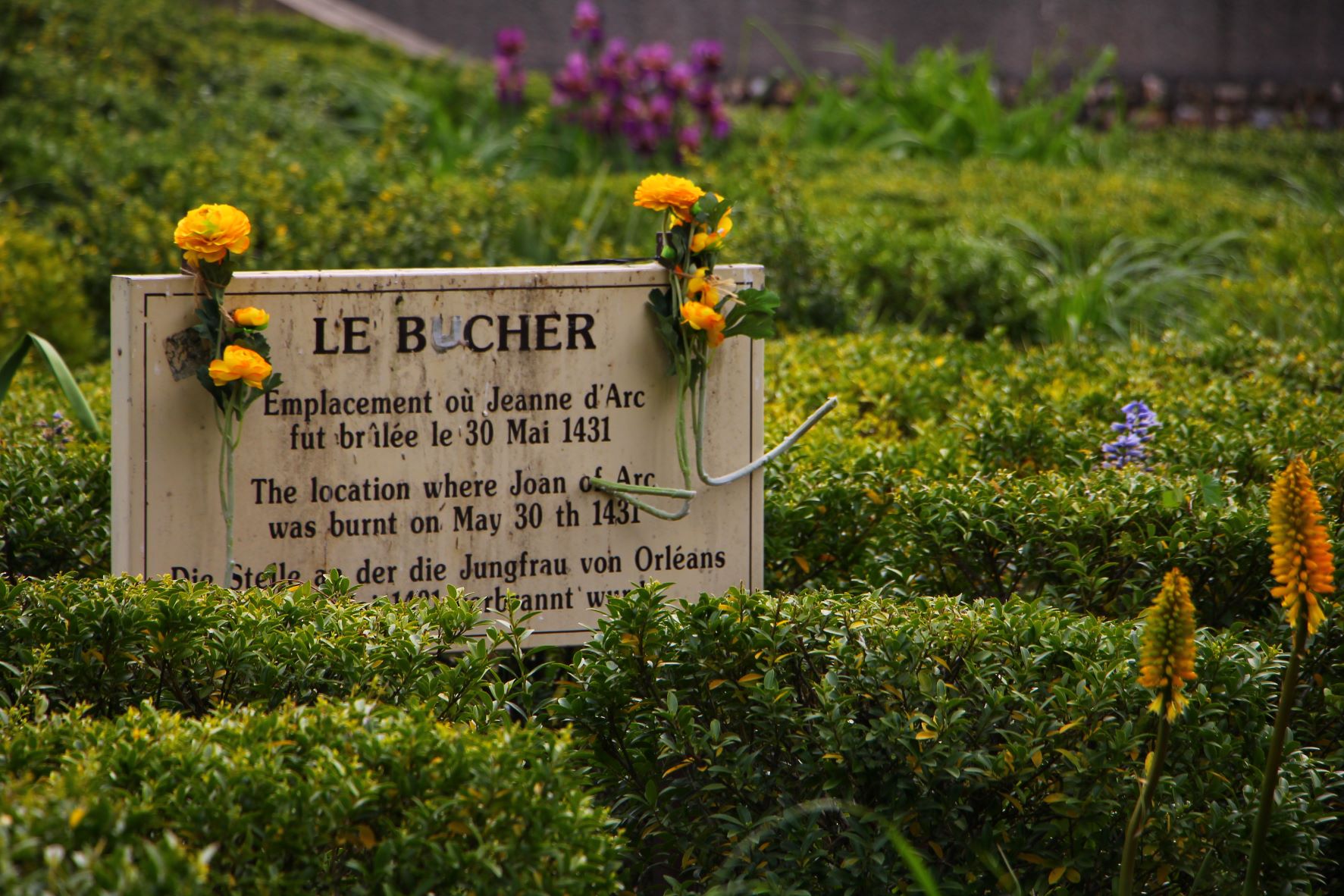 There’s a lovely garden to one side with paths that lead around to the entrance. Along the way is a plaque marking the actual location of Joan’s demise in 1431. There are beautiful renderings of her in different mediums both inside and outside her namesake church as well as in other churches and businesses around town.