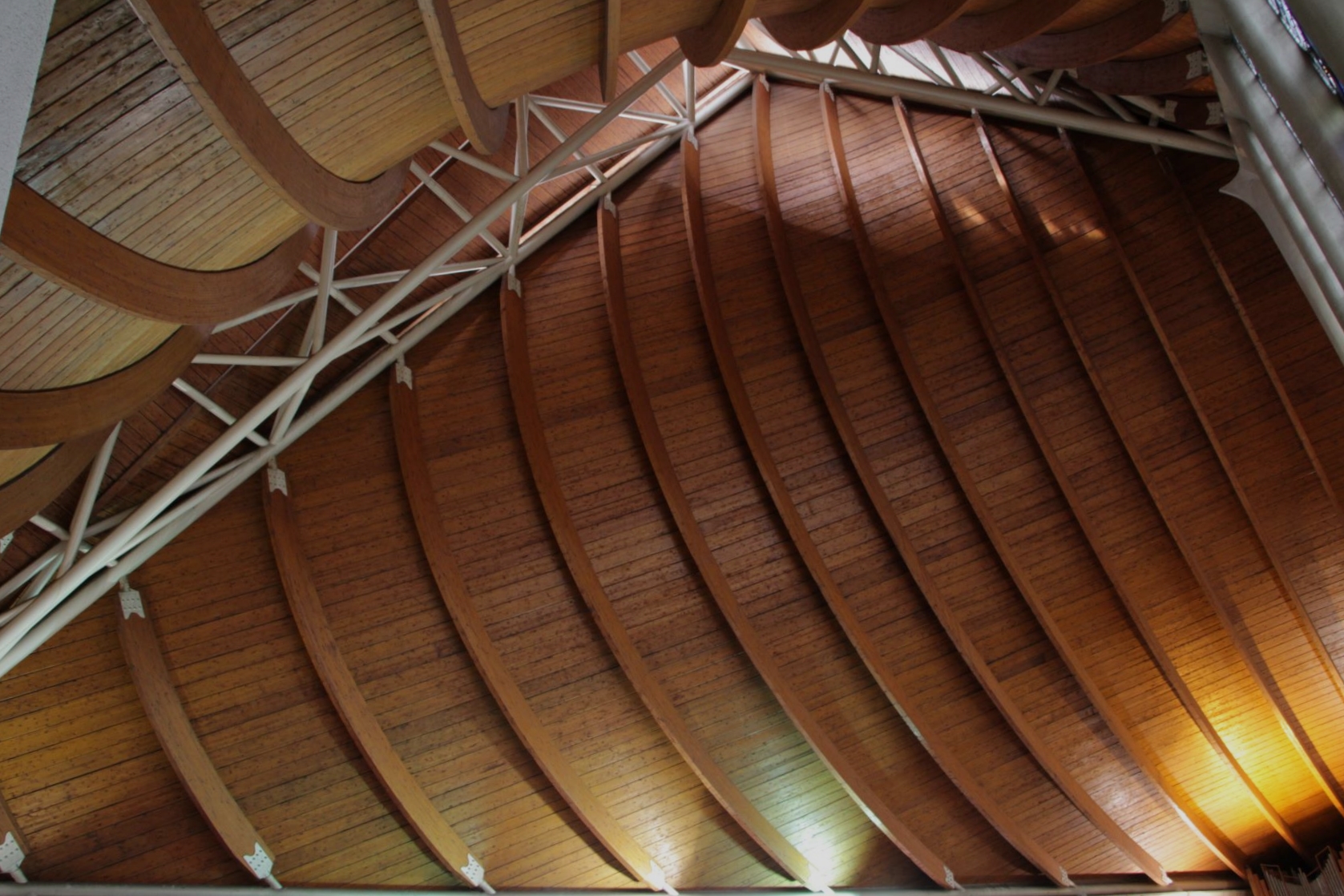 Joan of Arc church sits in the center of the square and has a really incredible architectural design. You can just make out the exterior in my photos above (the black ship sails hovering behind the carousel), which carried into the swooping wooden ceilinged interior.