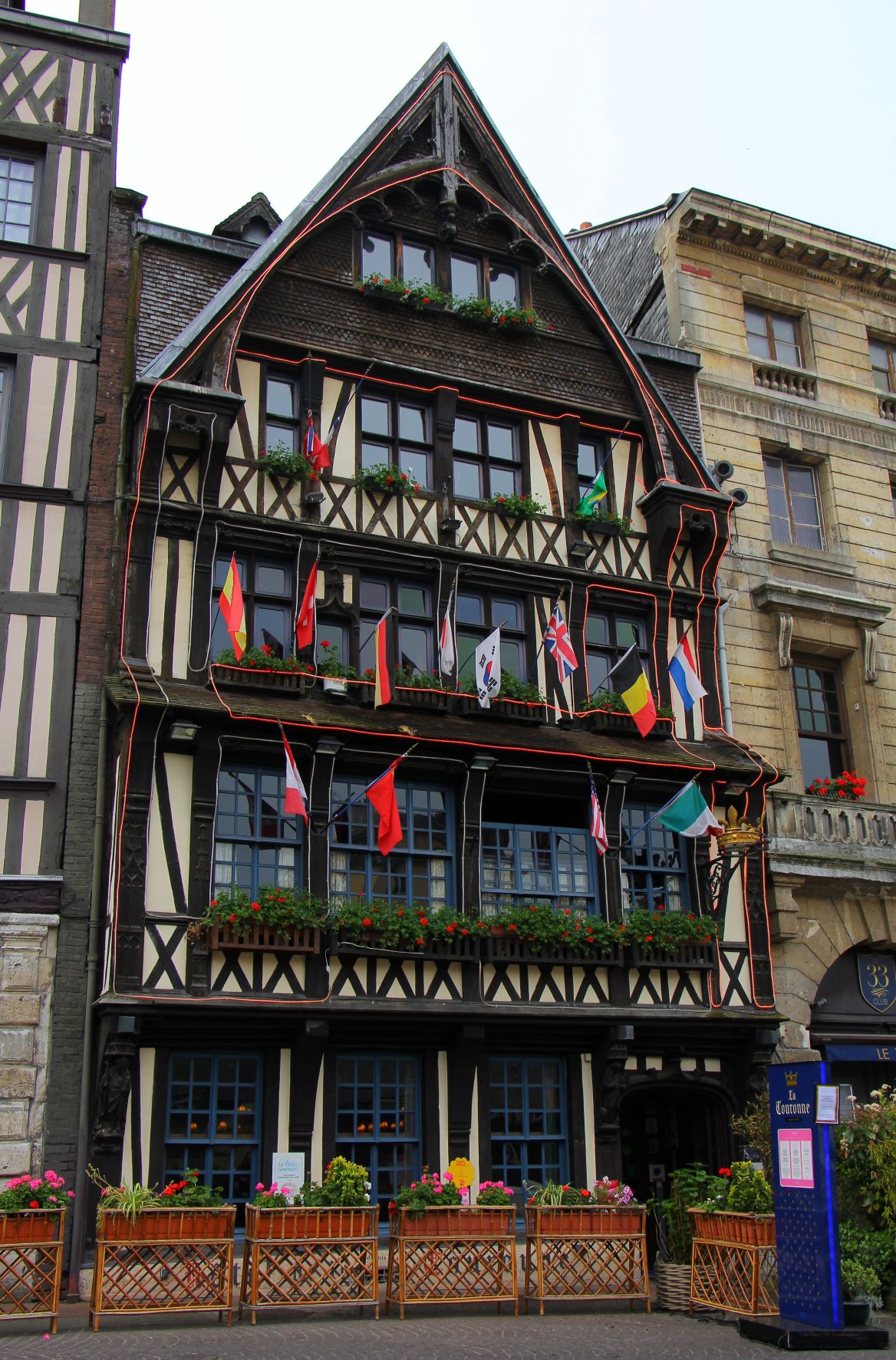 One shop I had to check out was Auzou, where I purchased the chocolatier’s ‘Joan of Arc tears,’ which are delicious cocoa powder covered almonds. I bought a few other snacks to take back to our hotel for Brian since he was at his work conference all day. The building itself dates from pre-1520 as evidenced by the higher floors leaning out into the street – this architectural style was then prohibited as it was believe to block the breeze and create stagnant, disease-riddled air.