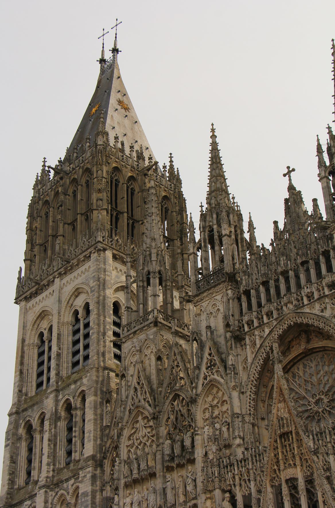 The pedestrian walkway opens into a huge square and in the middle sits the soaring Notre-Dame Cathedral of Rouen. I was intrigued by the mismatched spires and the incredible state of the statues all around the gothic exterior. It was apparently also intriguing to Claude Monet, who painted 30 depictions of the cathedral in different light.