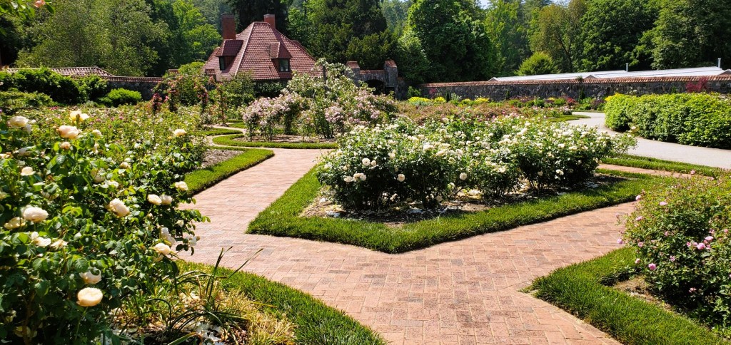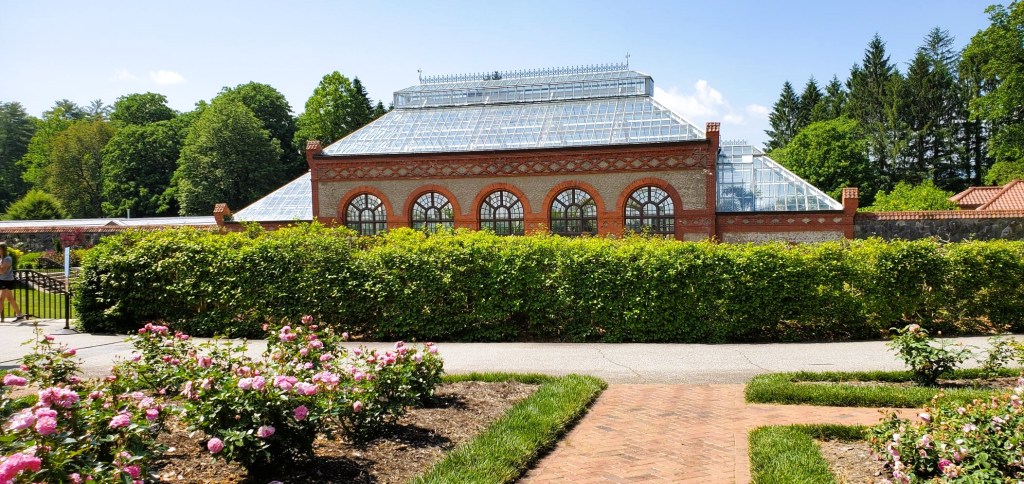 The gardens were lovely but very warm and sunny. We walked through the walled garden and rose garden toward the conservatory but ended up looping back to our car. Our lack of sunscreen, sunglasses, and headwear did not bode well for our light complexions!