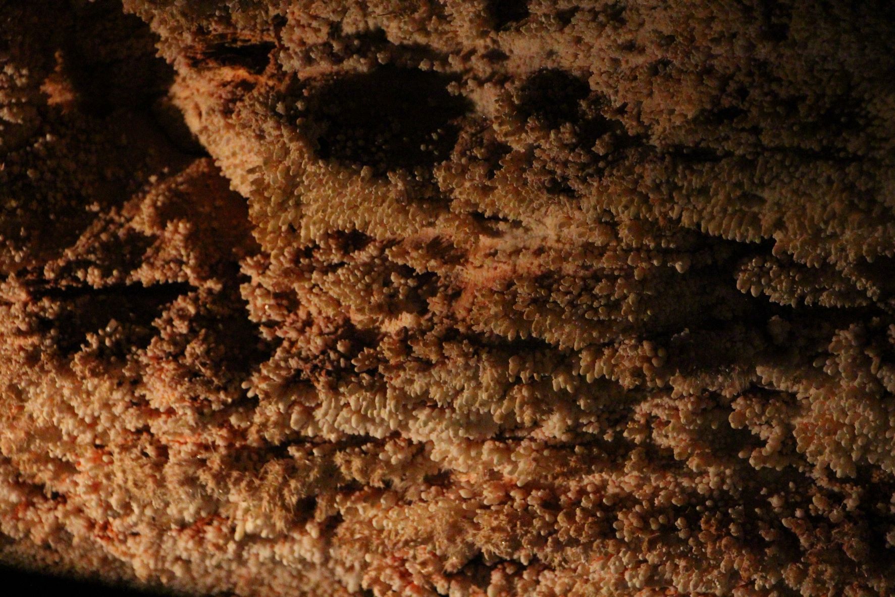 For that reason, I appreciated the point of the tour where we were seated in a small section of the cave for his more detailed explanation about the boxwork, frostwork, popcorn, and flowerstone formations unique to this cave system. The vast majority of the world’s boxwork is in this cave – it’s featured in the first photo below.