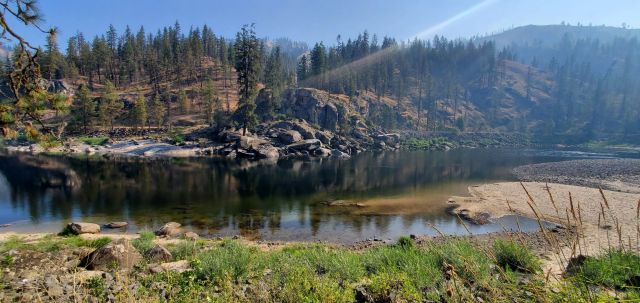 The wildfire smoke was hanging in the air, and it gave everything a mystical appearance in the morning. We stopped several times along the river to walk around and just take it in.