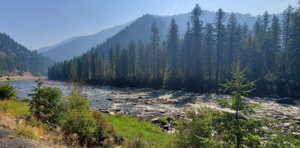 Eventually we worked it out and he created a great itinerary that took us across Washington and through Idaho and Montana to Wyoming. We took a week to make the trip, and I was grateful for the reasonable pace. It was unseasonably hot so we would get up early and try to get to our destination by early afternoon to beat the heat. This ended up being even more important as we entered Idaho and Montana, which were each experiencing wildfires along our route.
