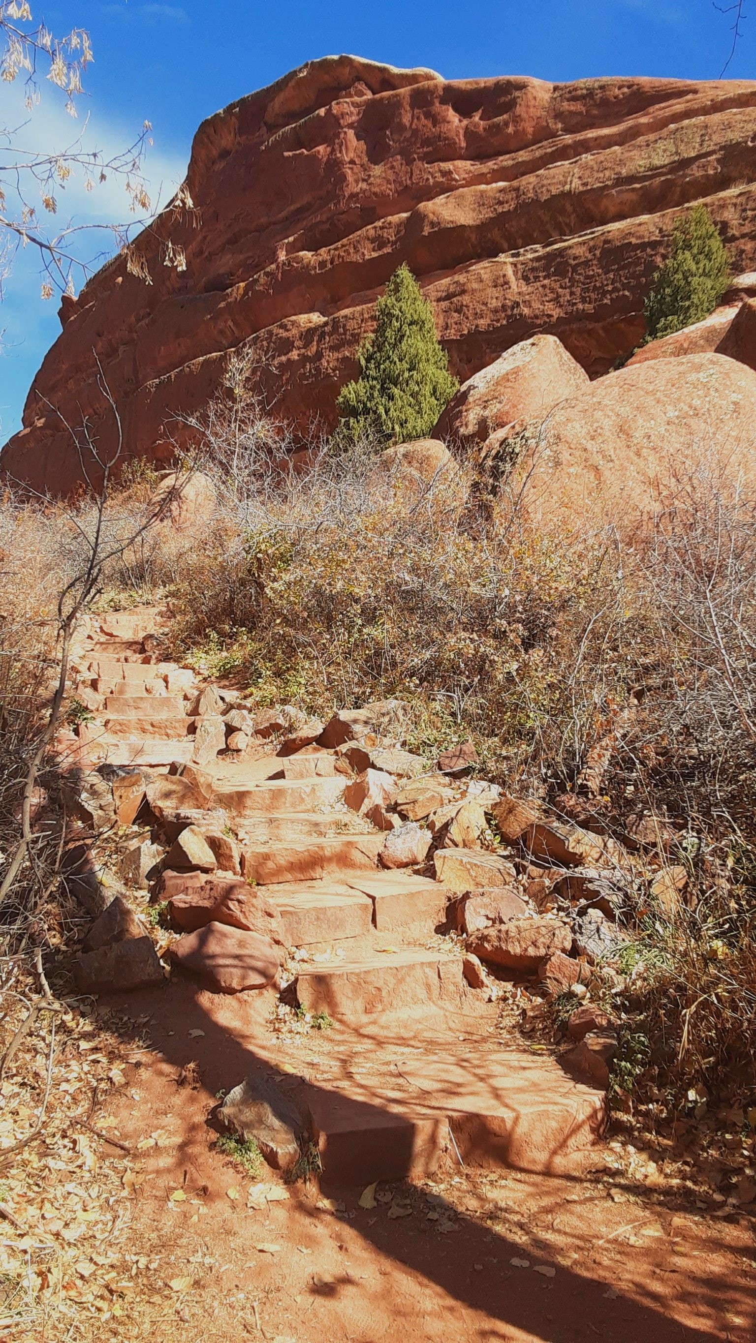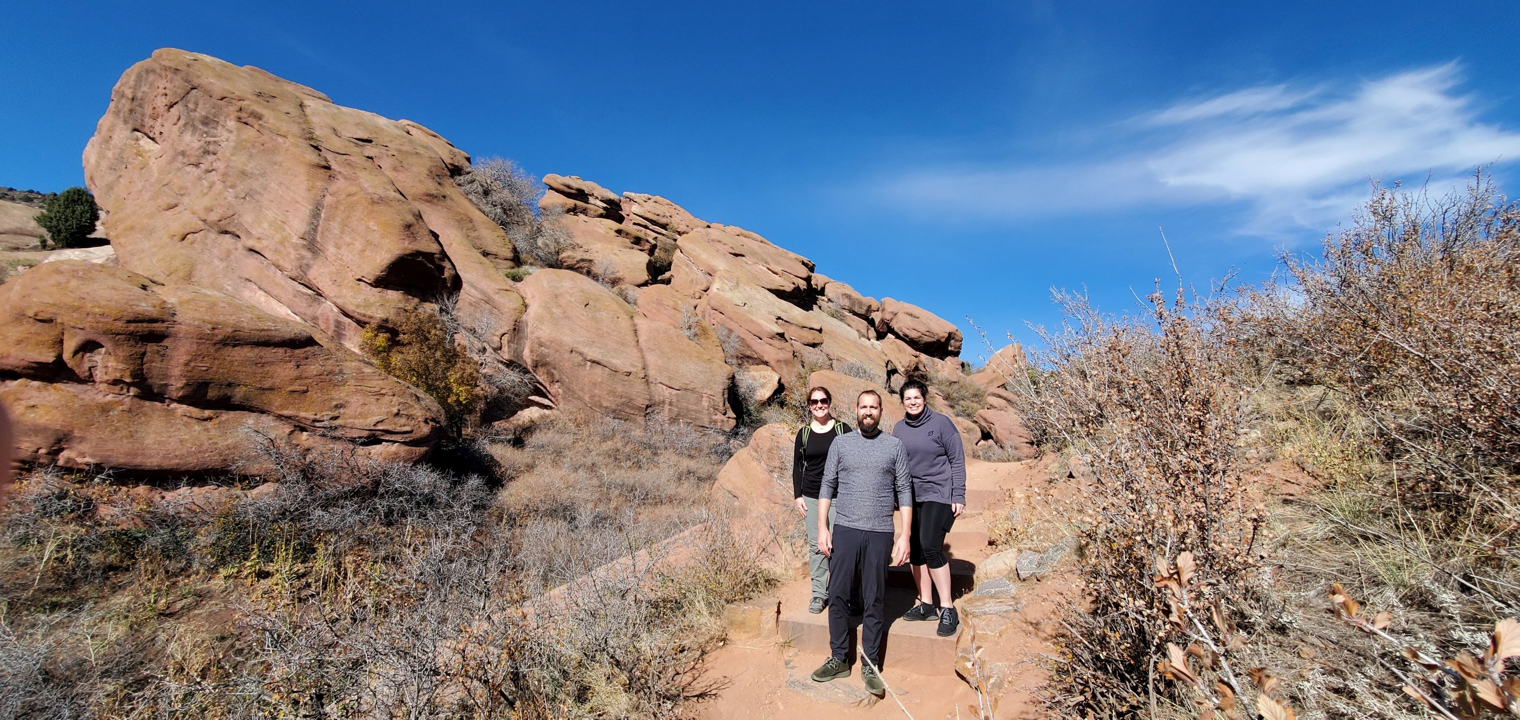One that caught my eye was the 1.4-mile Trading Post loop trail at Red Rocks Park and Amphitheatre. Situated at 6,450 feet in between the plains and Rocky Mountains, this area was easy to access, had ample parking, and ended up being a perfect spot to walk off our brunch!