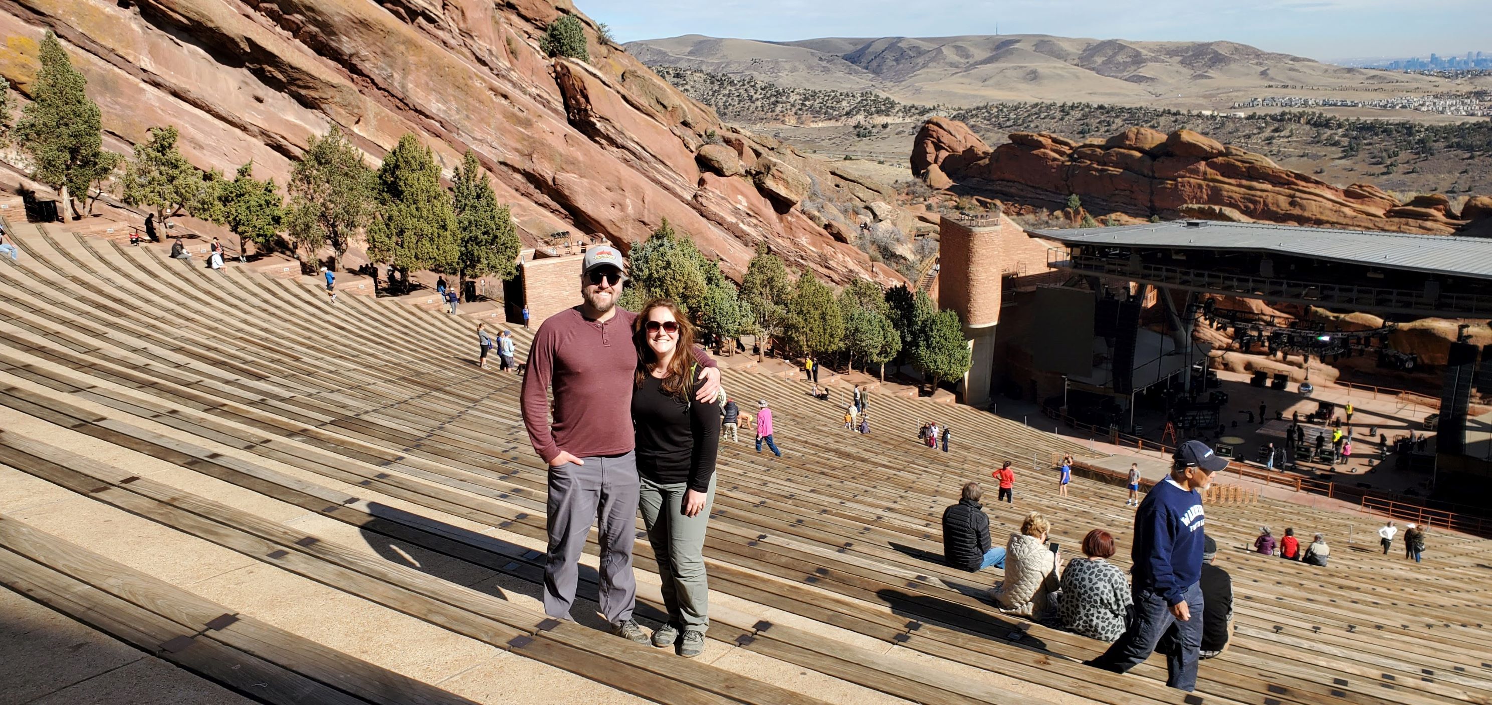 The views of the surrounding area, including Denver off in the distance!, were stunning, but we were even more enraptured by the people who were using the amphitheater seating area for their workouts.