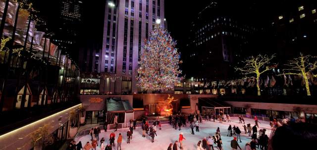 He was also not thrilled with my suggestion that we make a reservation to skate on the Rockefeller Center ice rink under said tree – but once again, he was an incredible sport! After a slice of pizza we walked over to the center and watched people with earlier time slots down on the rink until it was our turn.