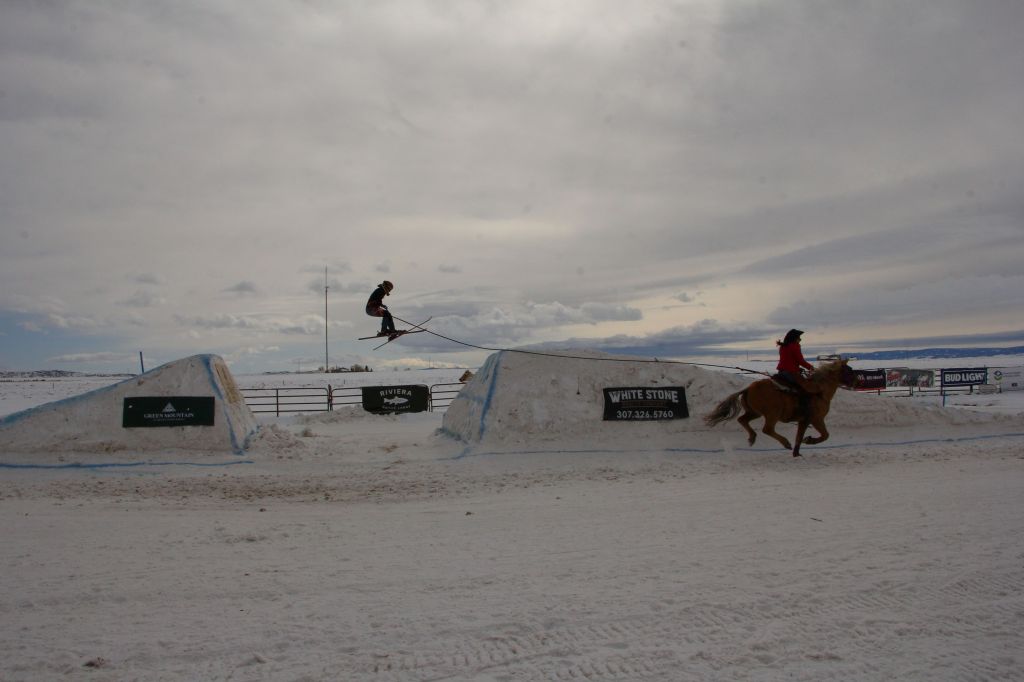 The key to the biggest jump was speed – while the skiers were entertaining, their ability to make it down the track had everything to do with the horse and rider pulling them.