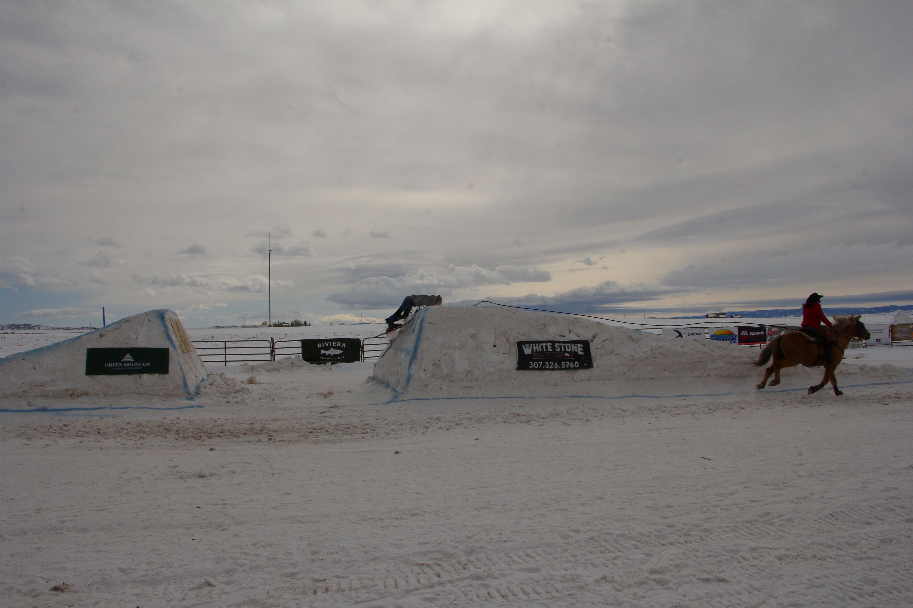 There were several ramps for both the novices and pros to go over – one larger jump after the first set of rings, a smaller mound that required them to switch to skiing on the other side of the horse, one at the very end with moguls, and then a very large jump that only the pros used.