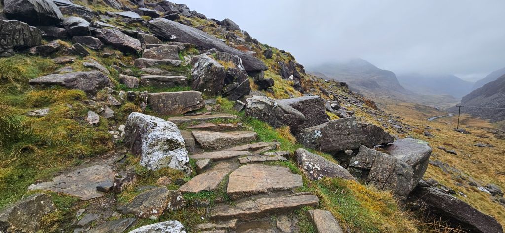 While the Pyg track is one of the shortest routes up Yr Wyddfa, it is the most rugged and challenging route to the summit. Beginning at Pen y Pass, the PYG winds its way up to Bwlch y Moch, where you will catch your first glimpse of Llyn Llydaw and its iconic causeway. The PYG continues until it eventually meets the Miners’ Track up towards Llanberis Path and onwards to the summit.