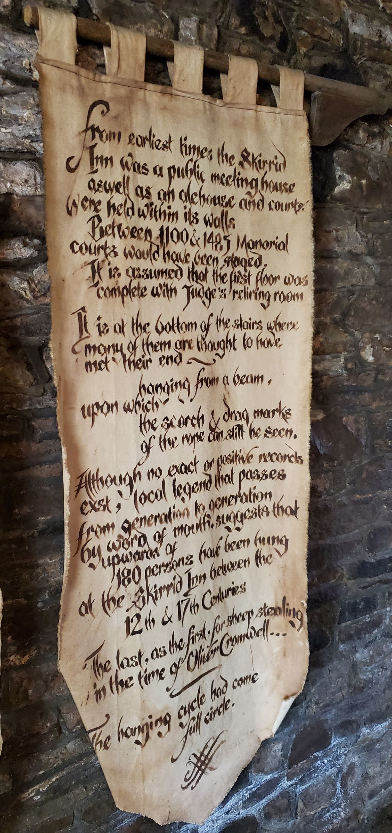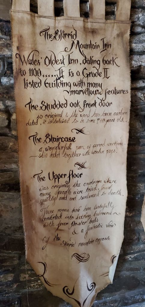 The historical Skirrid Inn was a fun pub stop with good food. The oldest pub in Wales, the Skirrid Inn dates back to the 1100s and some of its spooky history was outlined on banners hung around the entry room.