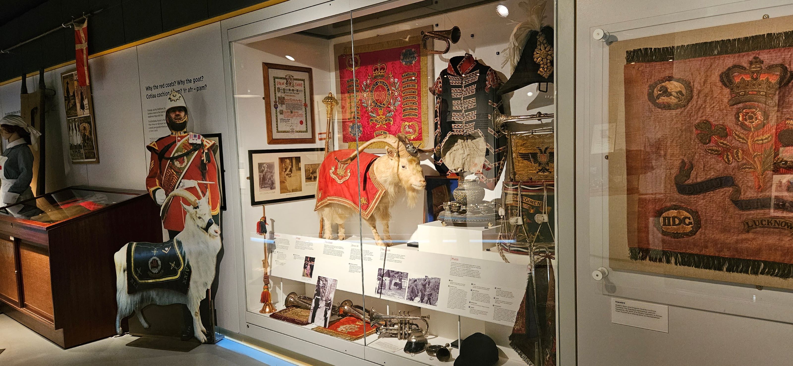 The exhibits I enjoyed the most focused on women in the military and the history of a goat serving as a ranking member of The Royal Welsh. Dating back to the 1770s when a wild goat was said to have accidentally joined the Royal Welsh Fusiliers on the field at the Battle of Bunker Hill, a goat has served with the regiment. But not without the occasional mishap: