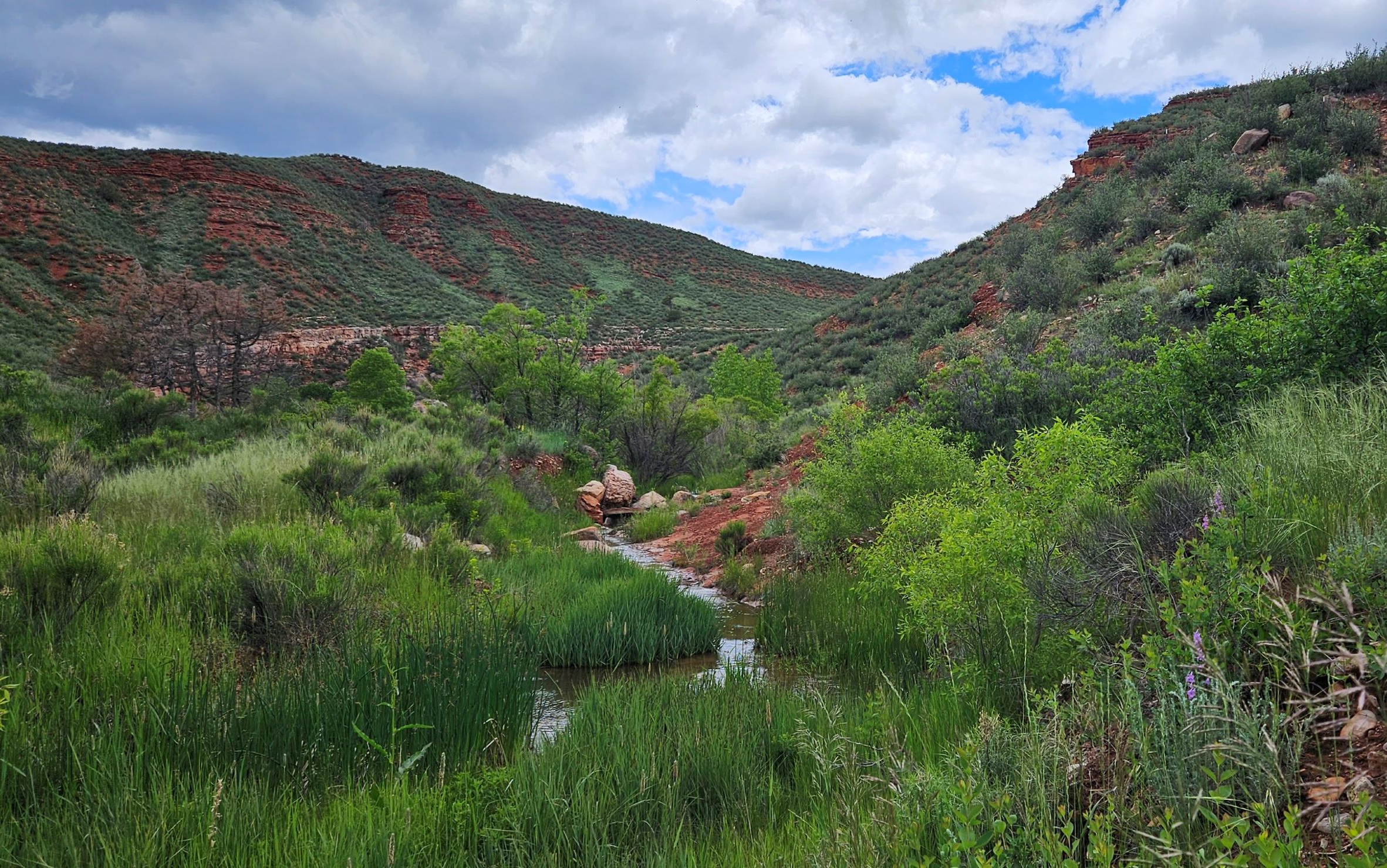 The Red Mountain Open Space is a 15,780-acre public area with 15-miles of trails for hiking, biking, and horse-back riding. We wound our way back its 10-mile entrance to the parking area at the trailhead, passing rolling red hills littered with boulders and spotted with the occasional pronghorn along the way.