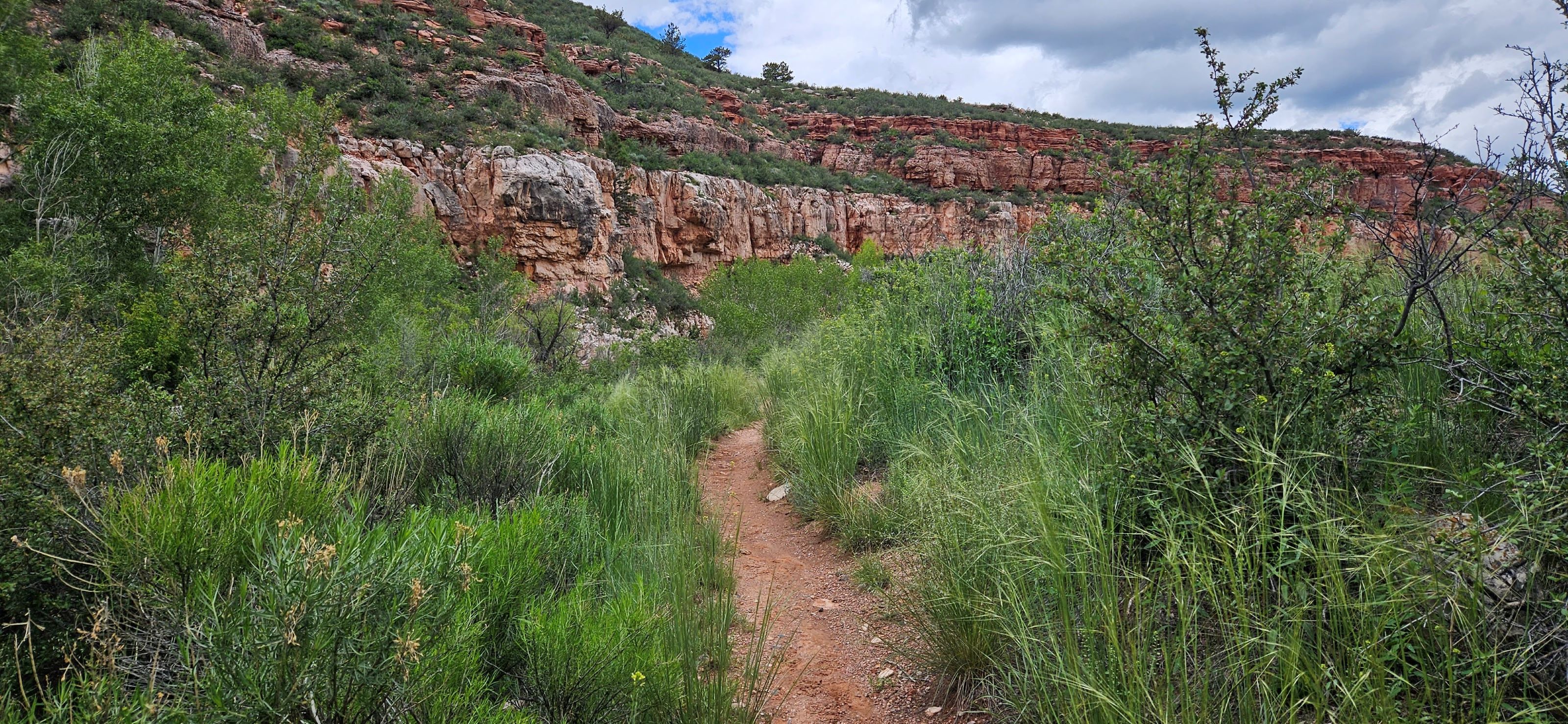 Our loop comprised sections of four trails: Bent Rock, Ruby Wash, Big Hole Wash, and Sinking Sun. The first half of our hike ended up being our favorite – winding among the red hills, crossing the river in a couple of spots, and admiring the cacti clinging to the rock ledges alongside our path.