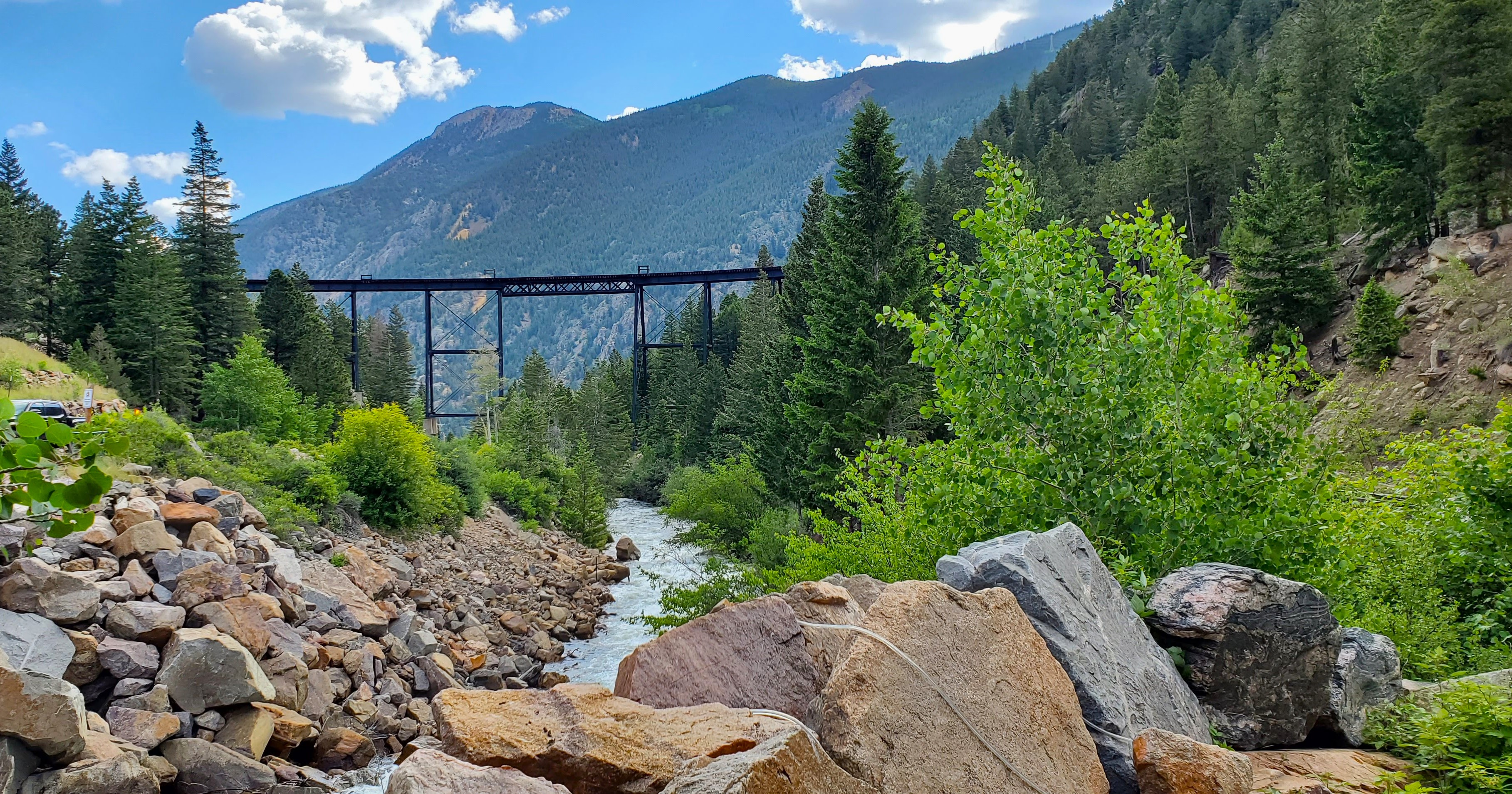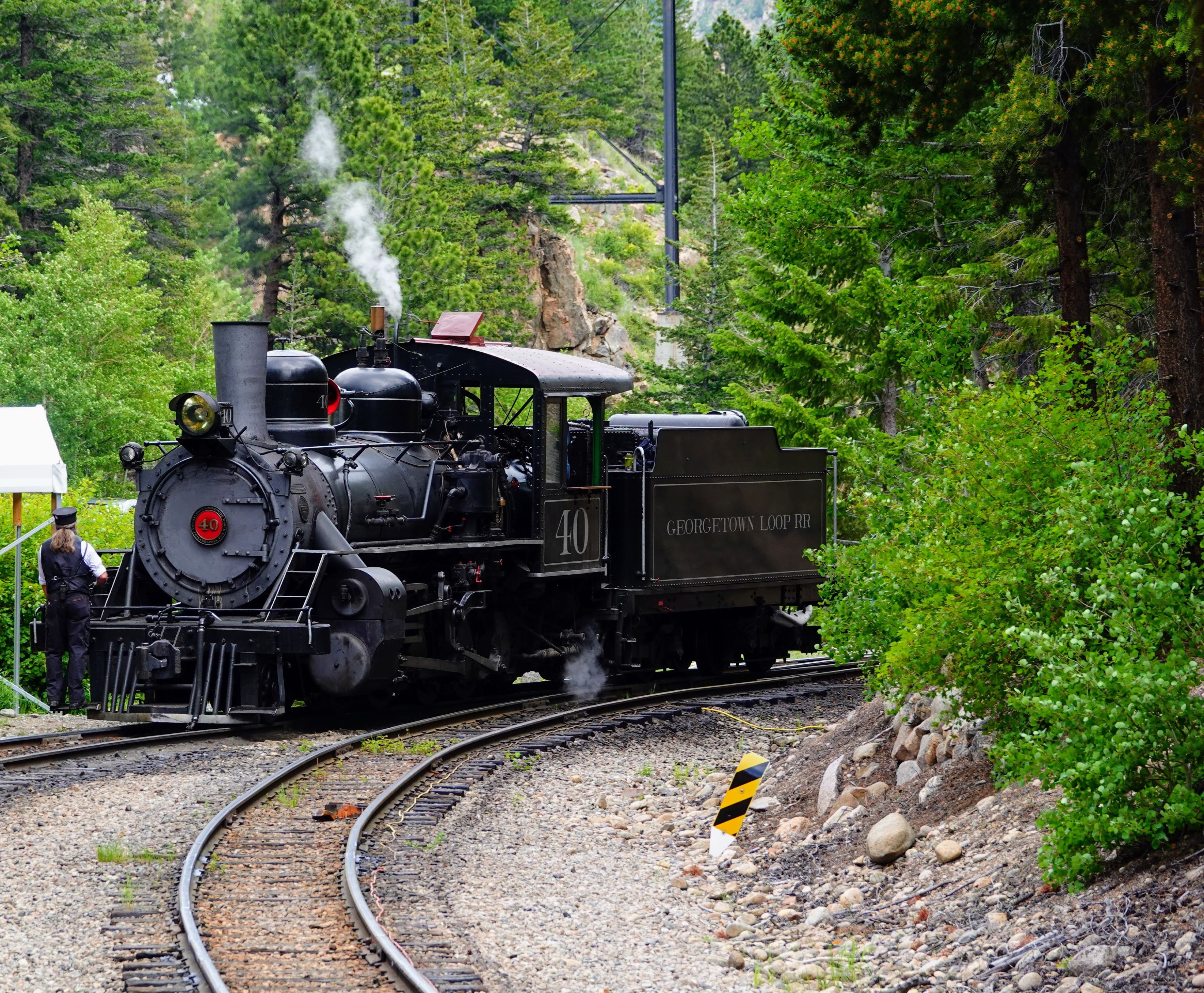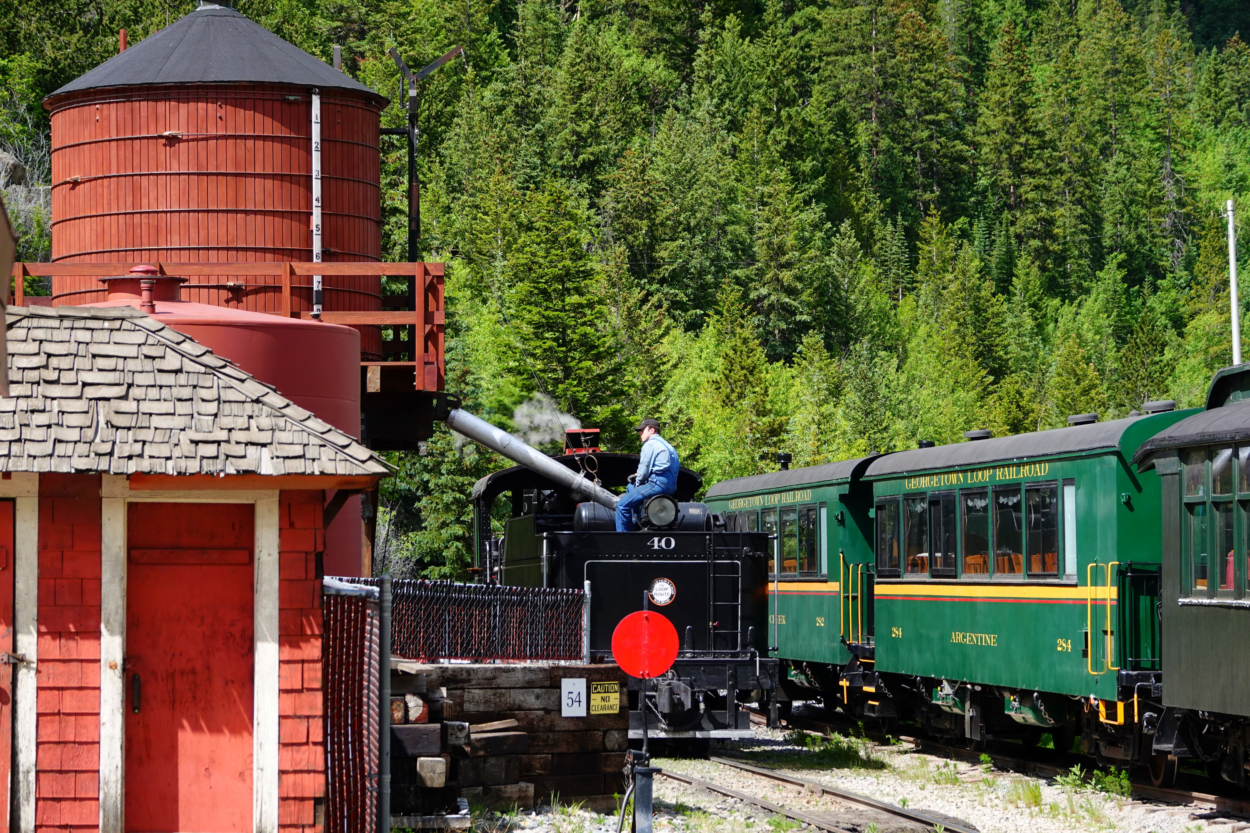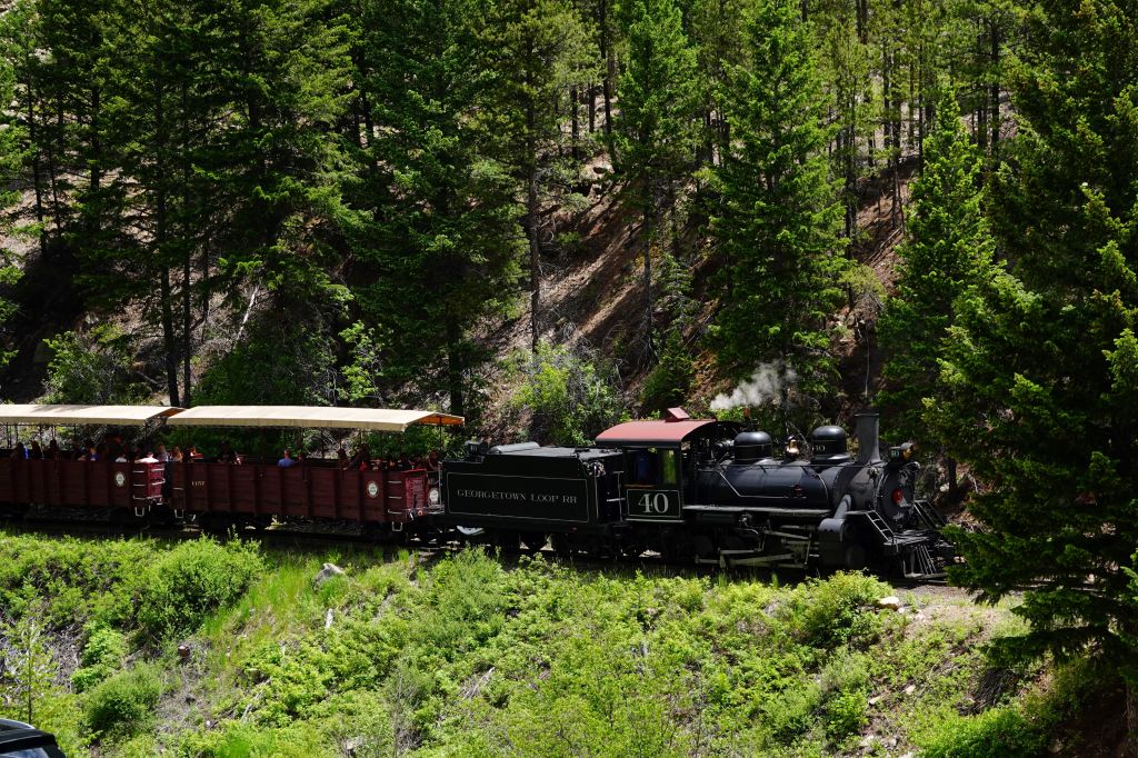Today, you can take the steam train on a roundtrip between Devil’s Gate station in Georgetown (elevation 8,615 feet) and Silver Plume station in Silver Plume (elevation 9,178 feet) via a variety of bridges and river crossings, and steep climbs and hairpin curves through the wooded mountains.