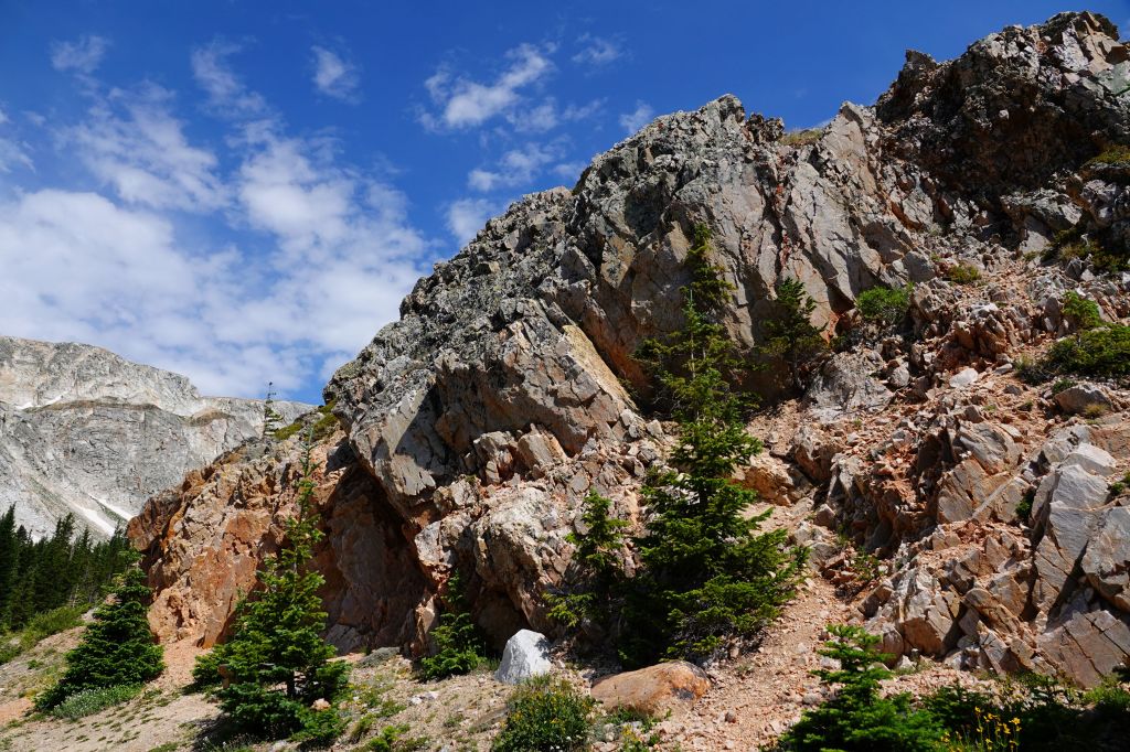 We didn’t have any trouble finding the trail, which wound through some trees but frequently opened out to stunning views of the nearby peaks. We stopped to take pictures and admire the wildflowers along the path and enjoyed the sunny weather.