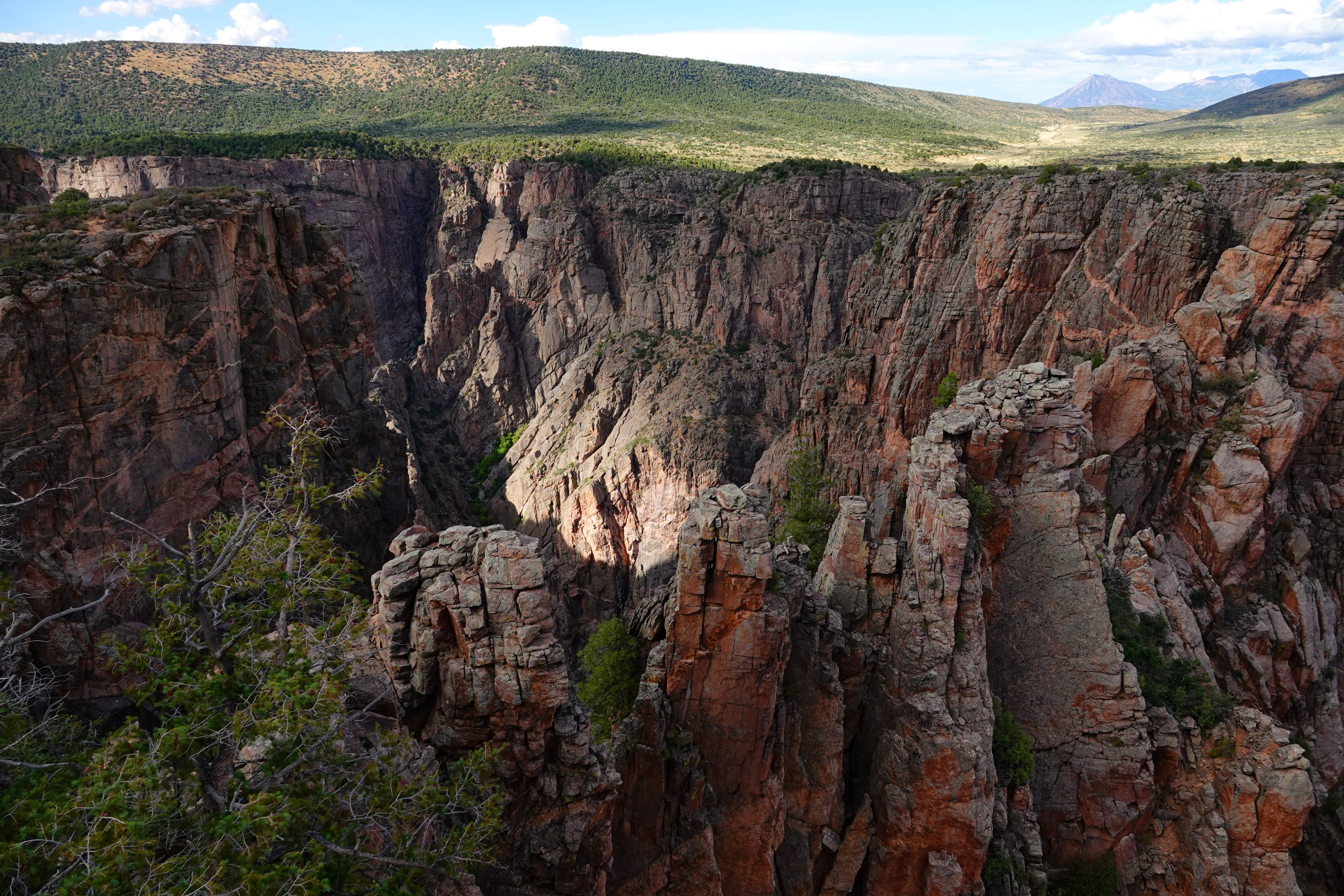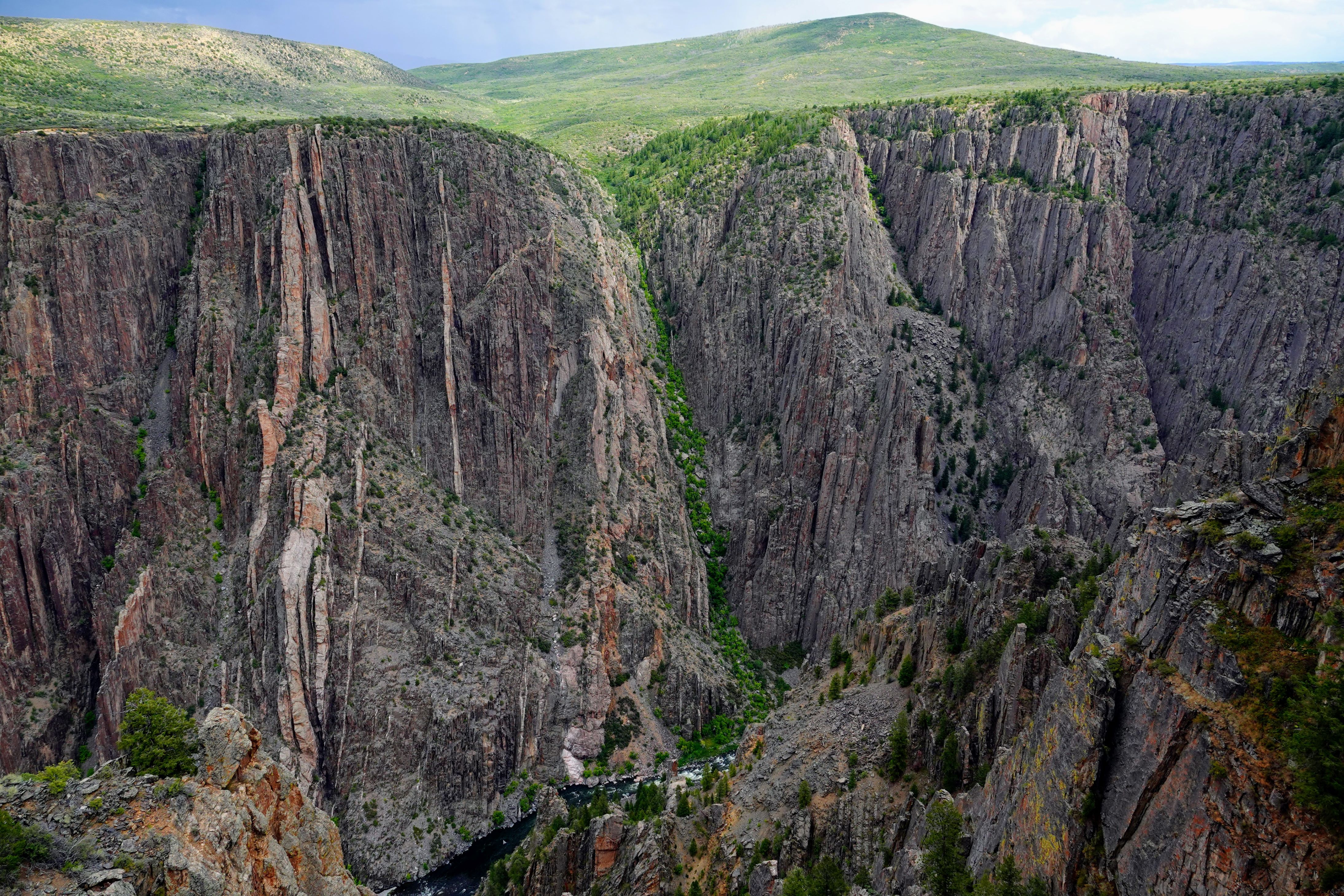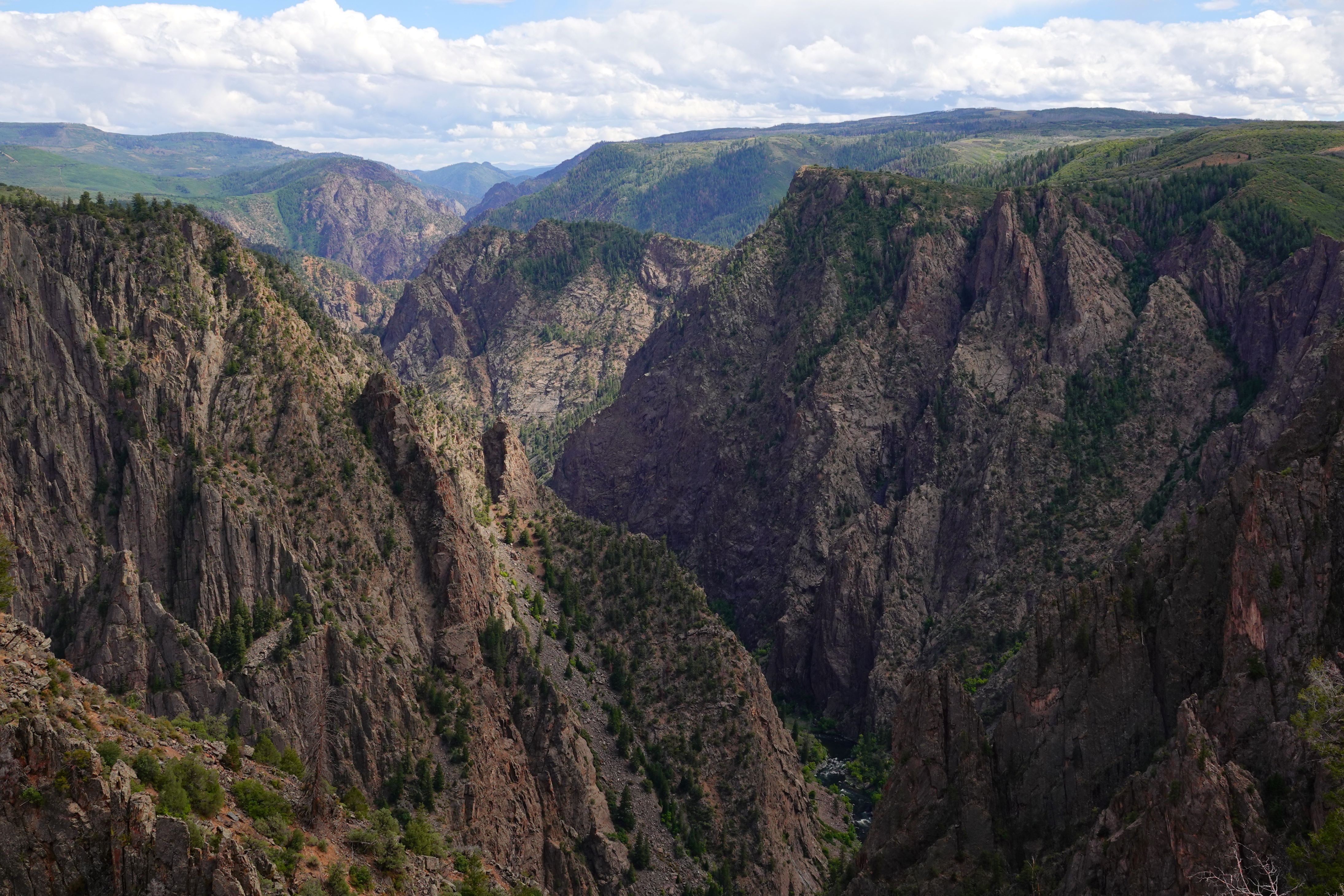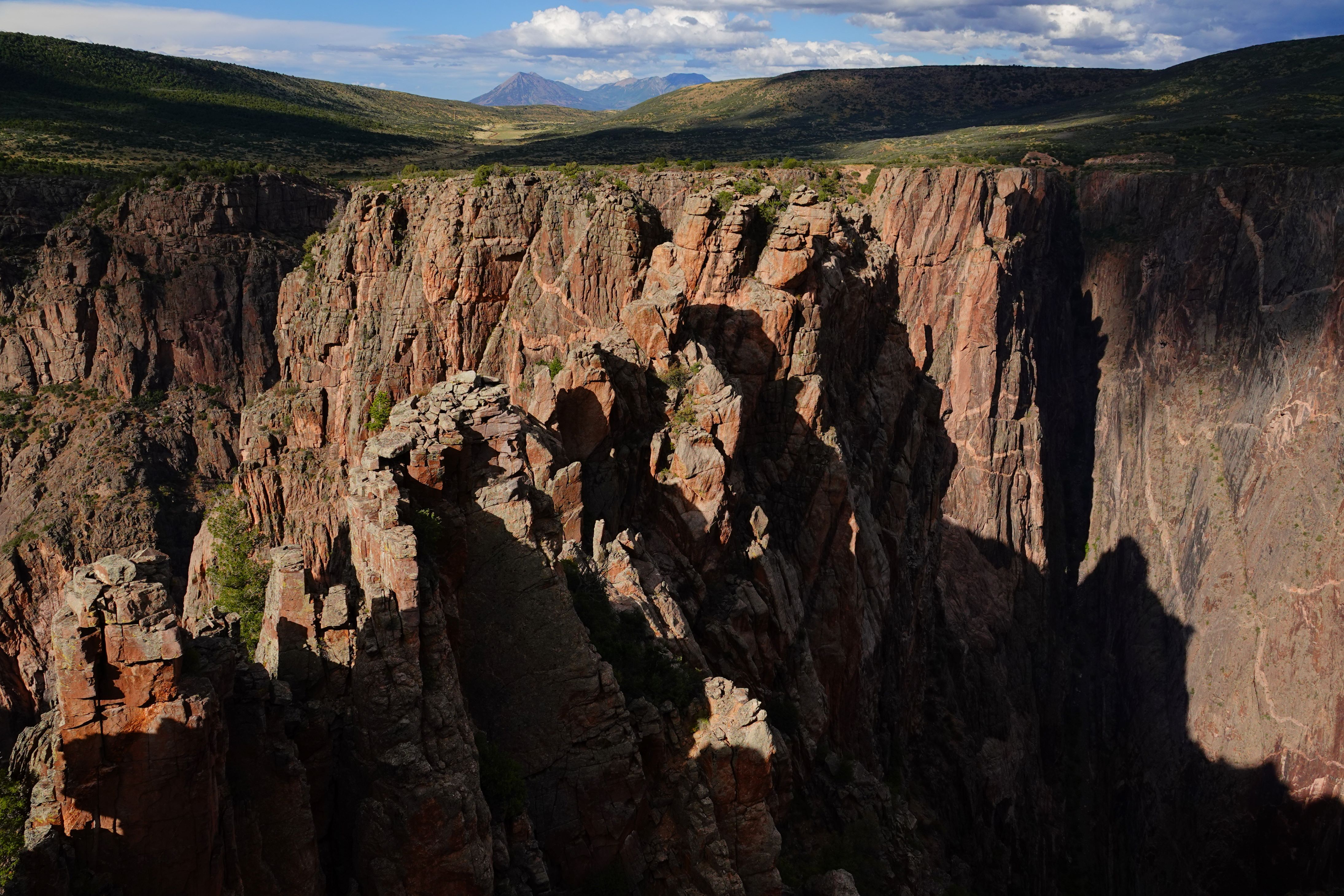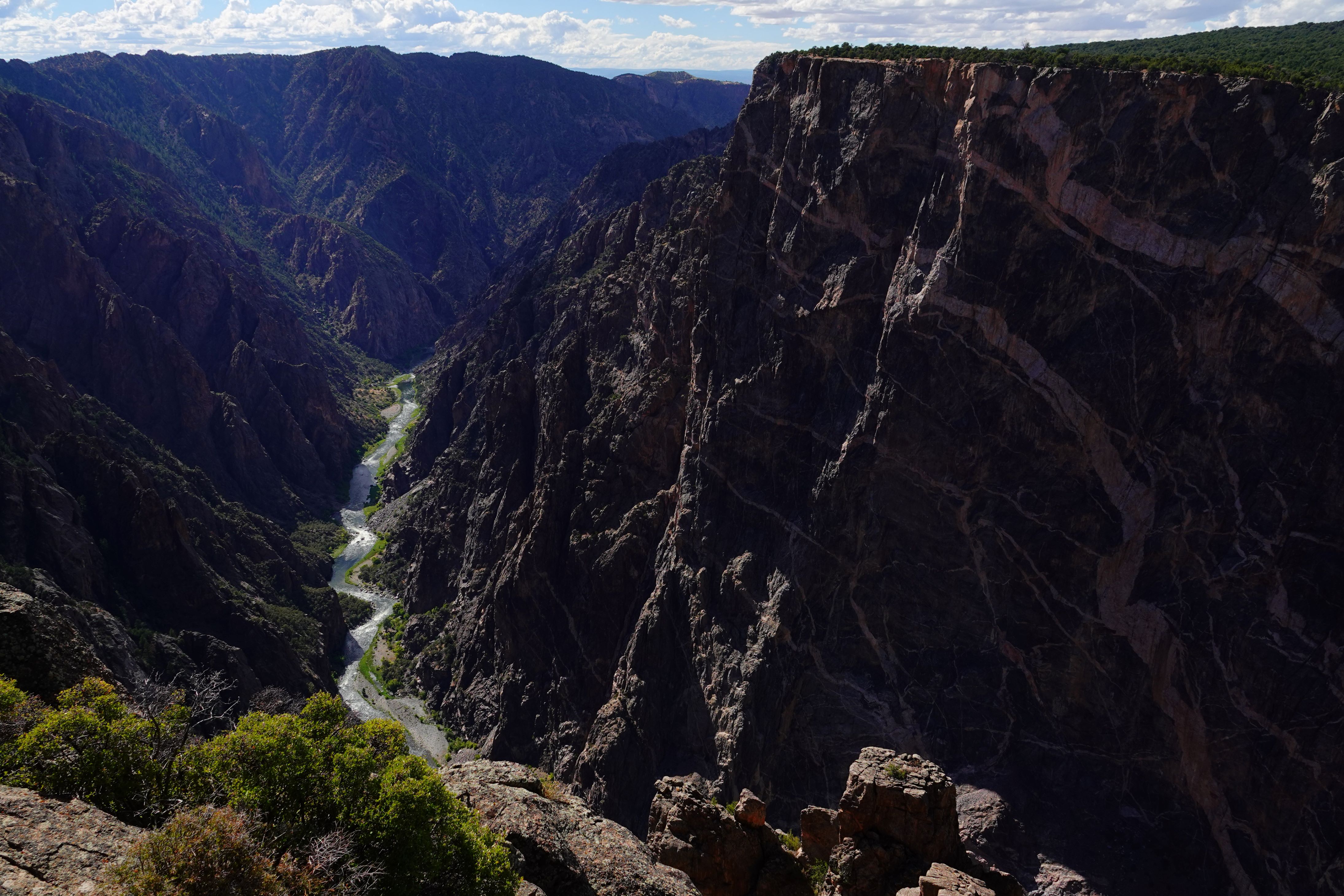 We concluded our national park visits during our Labor Day motorcycle trip with Black Canyon of the Gunnison National Park. Black Canyon is known for its incredibly deep and steep cliffs as well as its very narrow widths – some so much so that only half an hour of sunlight reaches the canyon floor each day!