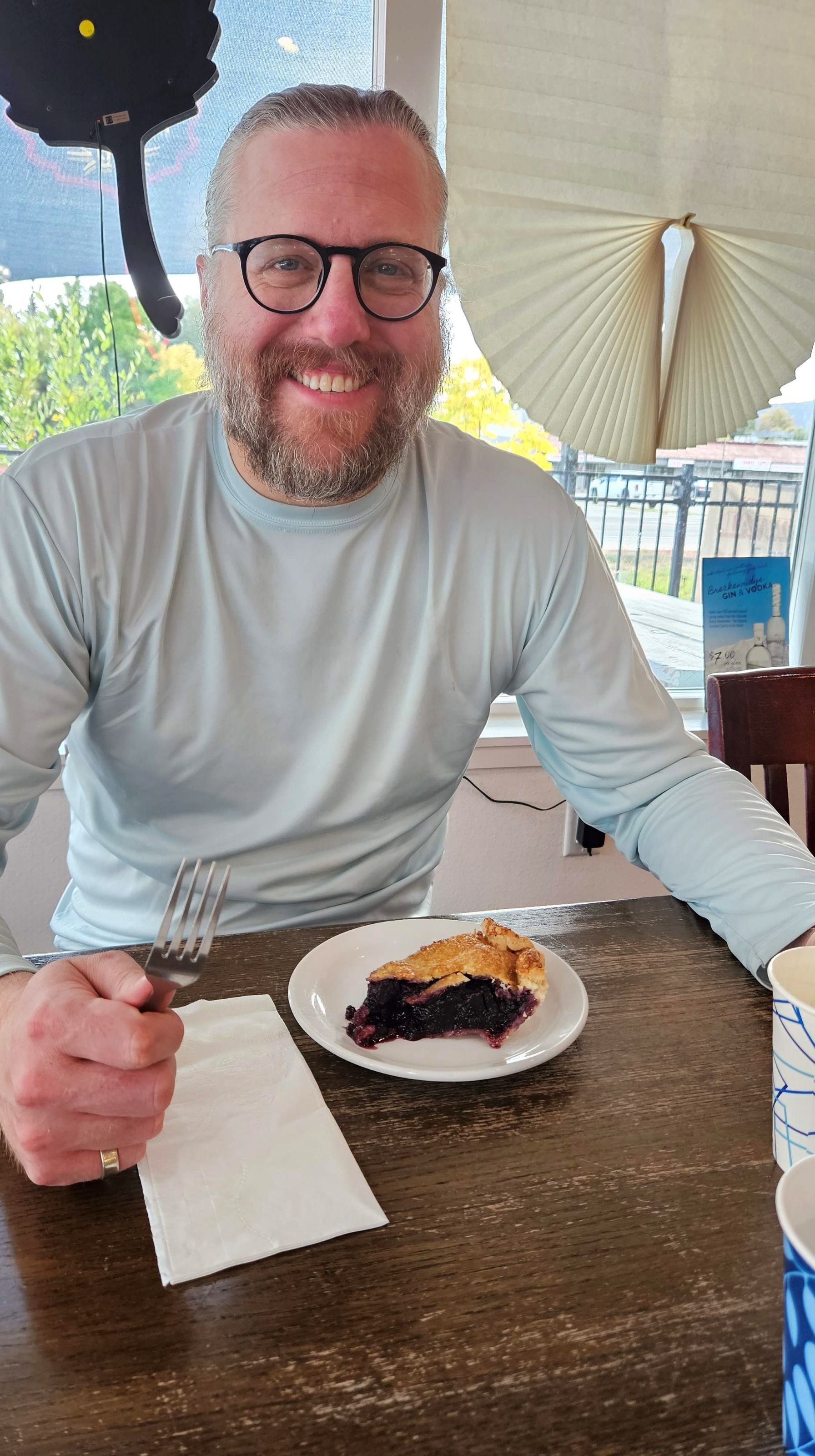 My chocolate chip pecan pie was pretty good – I love pecan pie and could have done without the chocolate chips – while Brian’s blueberry pie was amazing. I think I’ll opt for one of their fruit pies next time we visit.