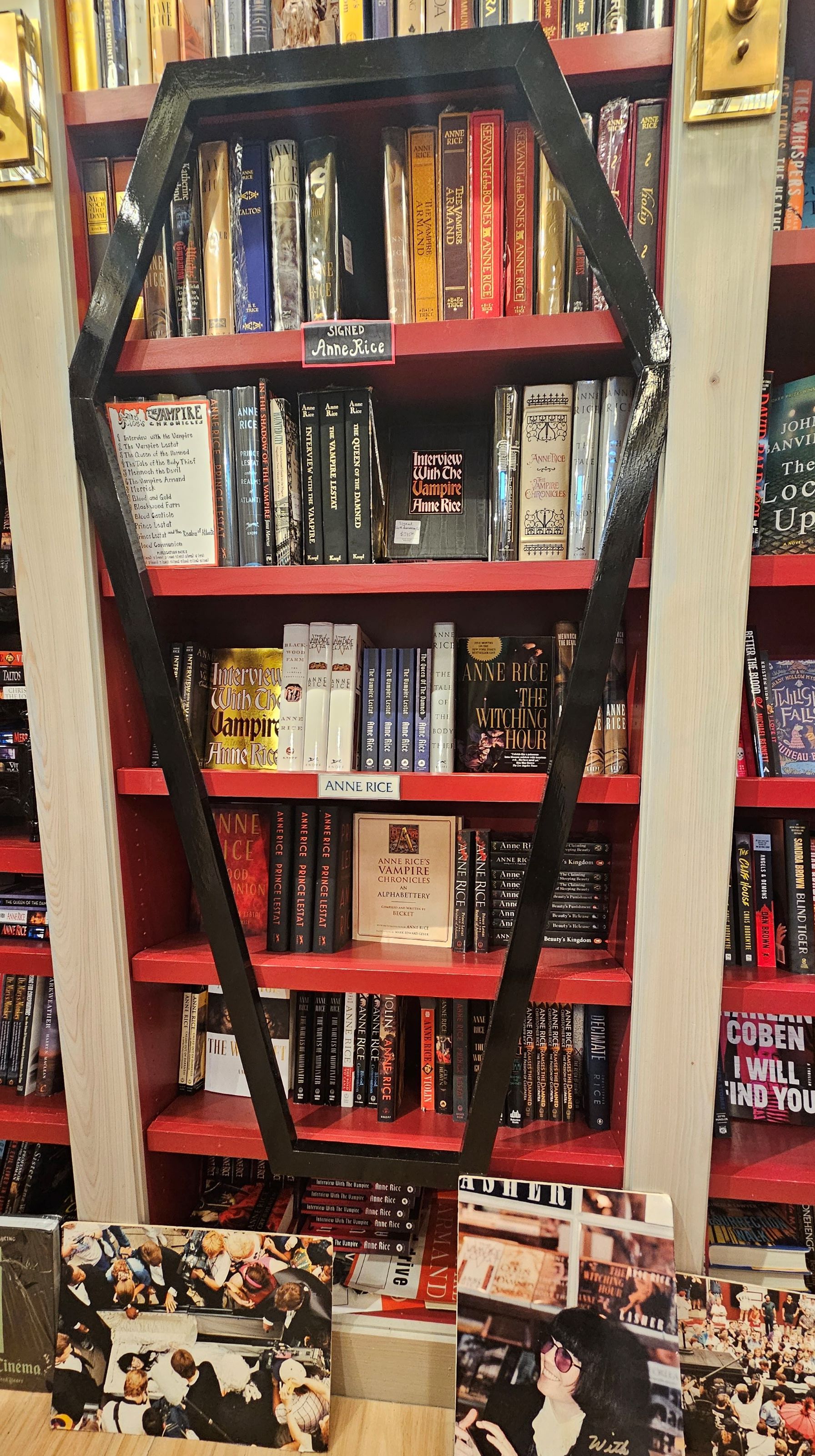 It was very humid and we were both ready to catch the streetcar back toward the CBD when we concluded our tour. Happily we gained a moment’s respite by stopping in the Garden District Book Shop on our walk back to the streetcar stop. The bookshop is in a complex with a coffee shop, clean bathrooms, and other boutique stores, and it had a great selection of authors as well as an area dedicated to Anne Rice’s famous ‘Interview with a Vampire’ series, including some author-signed editions.