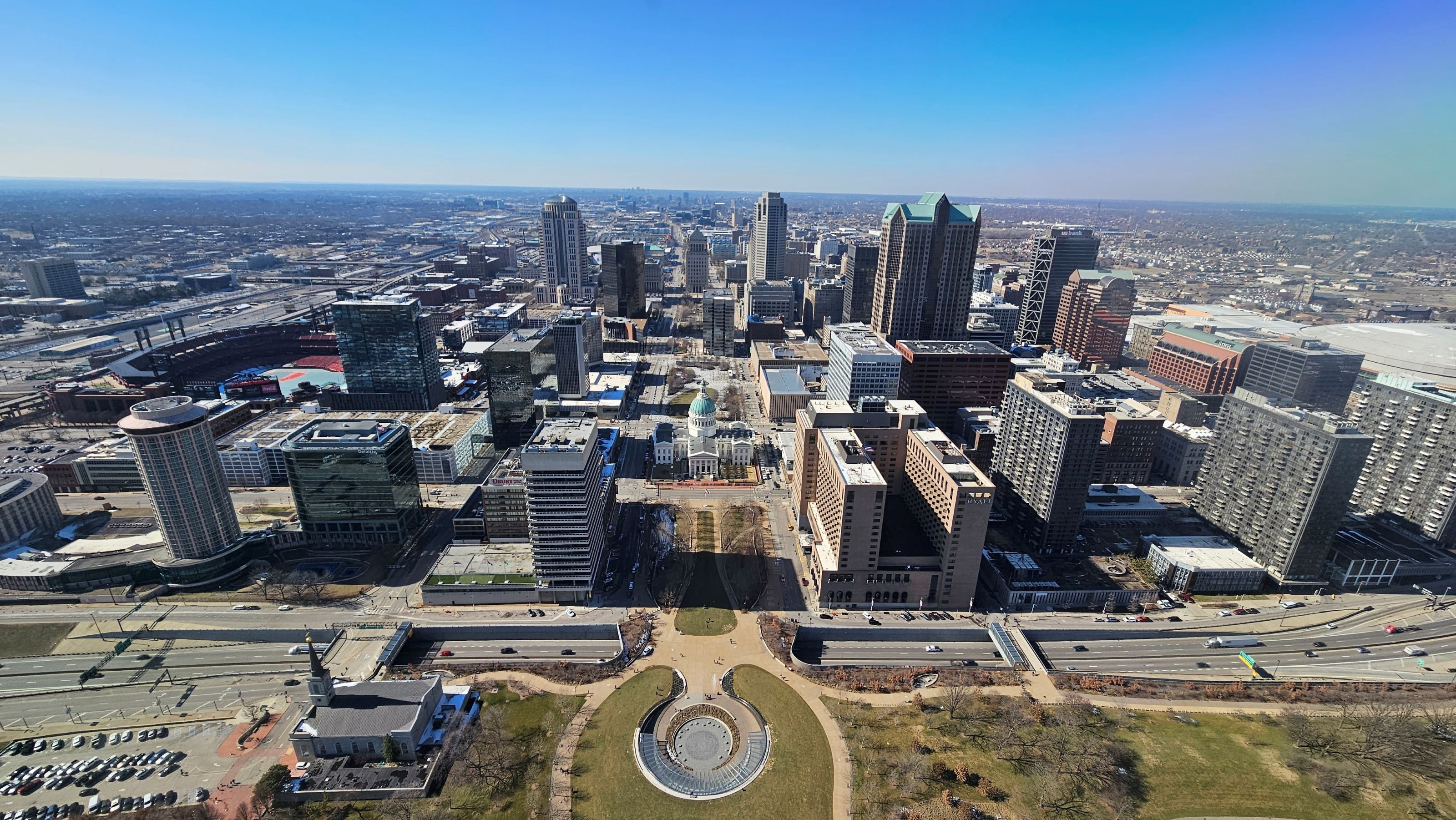 It was a pretty clear day so we had good views to the east of the Mississippi River and to the west of downtown St. Louis and the nearby Old Courthouse, which has a museum I would love to explore during our next visit. The courthouse was build in the mid-1800s and was the setting for the infamous Dred Scott case: