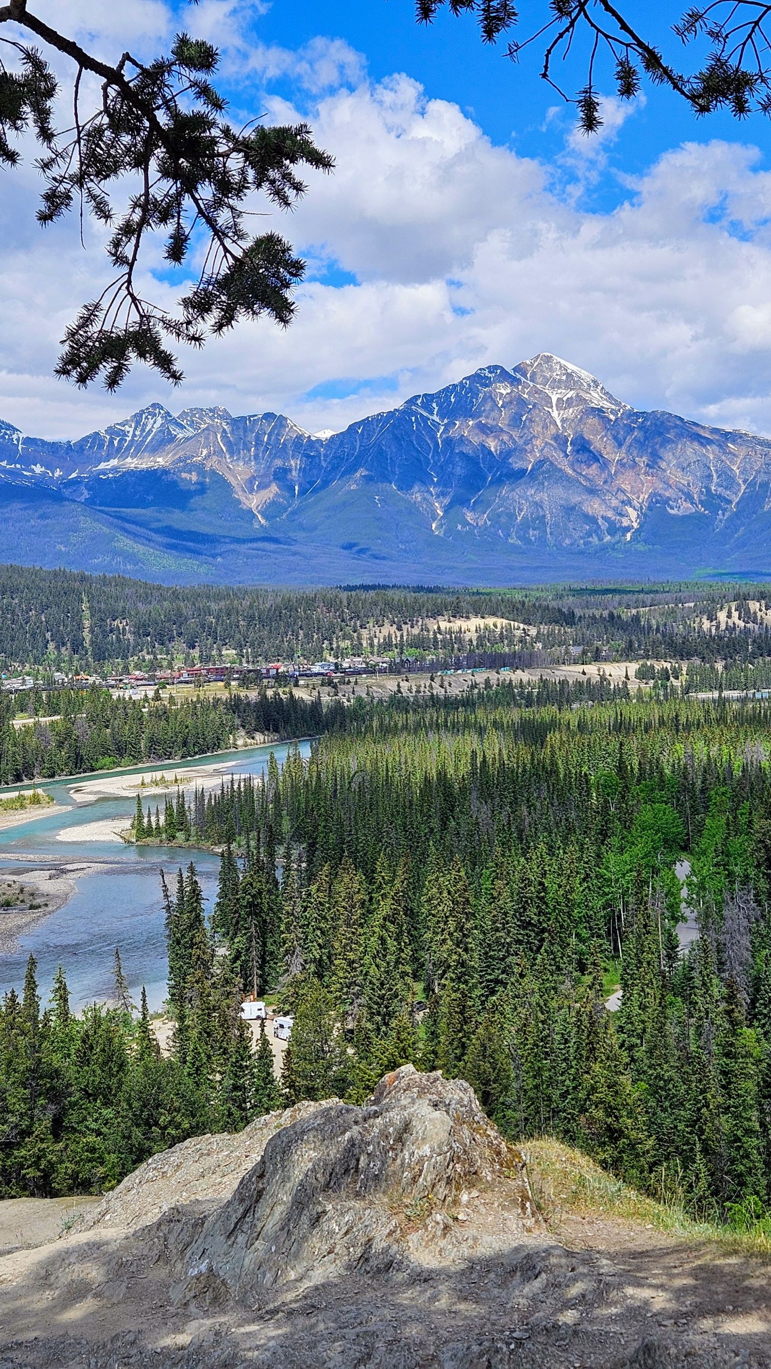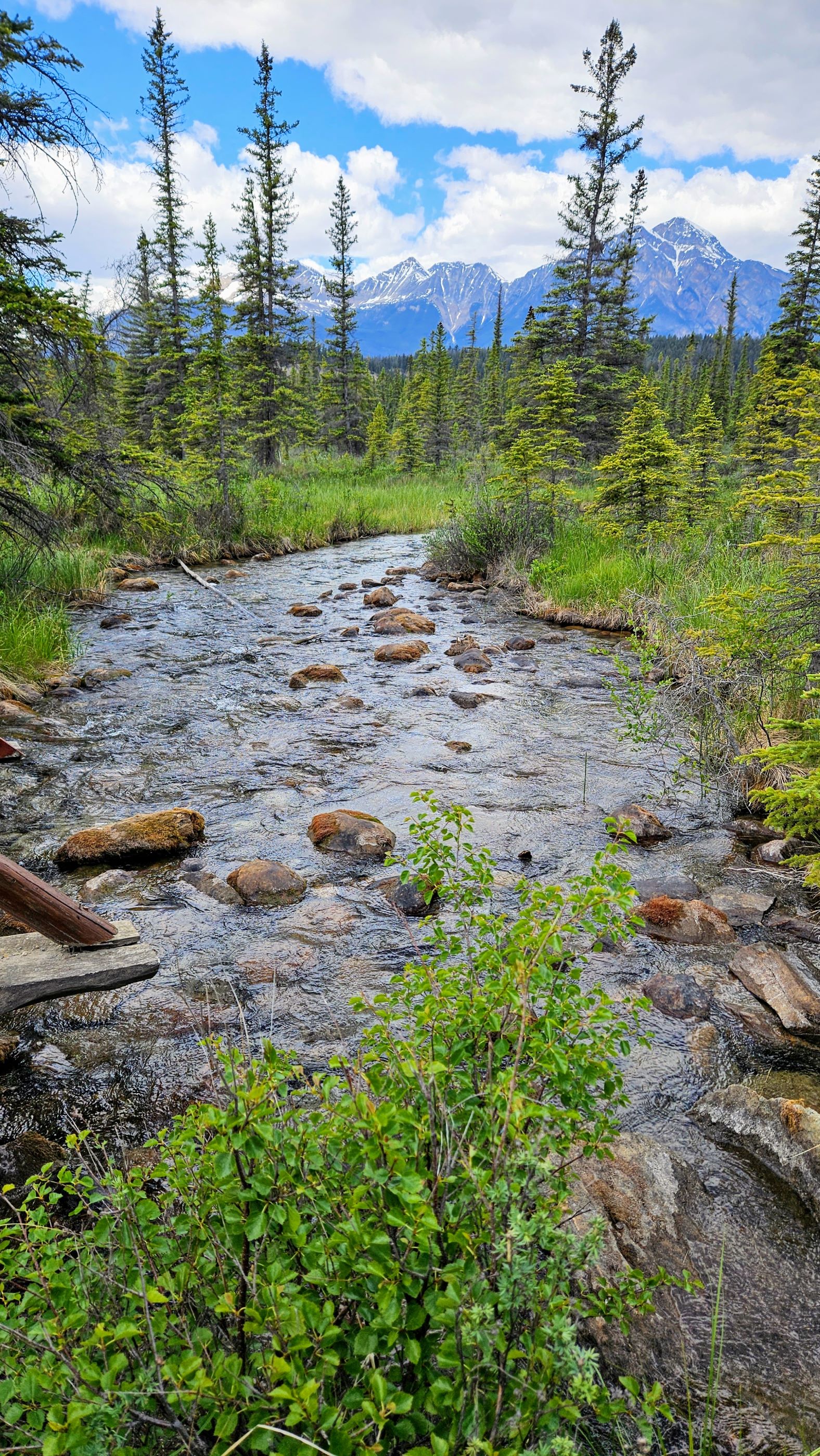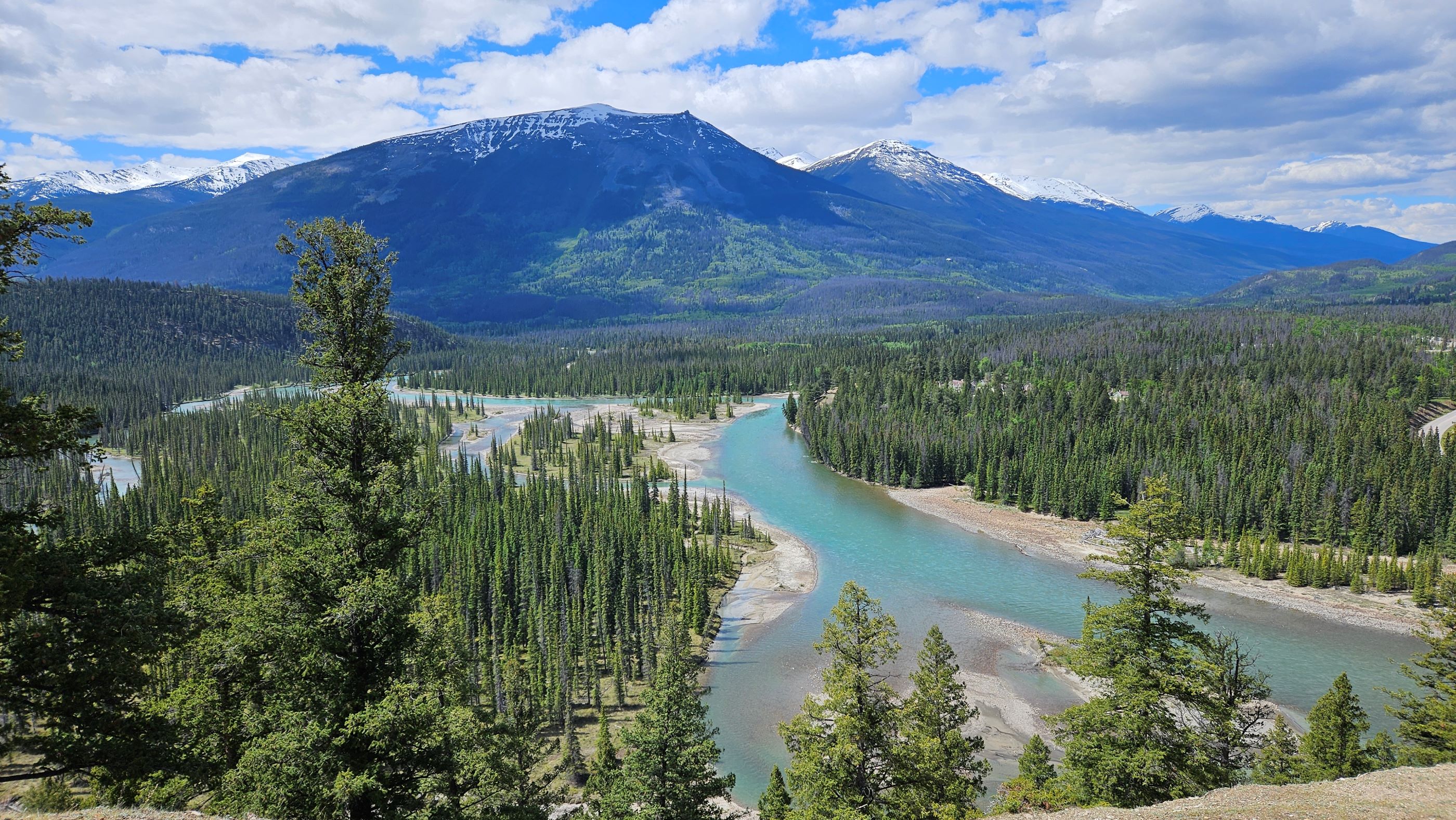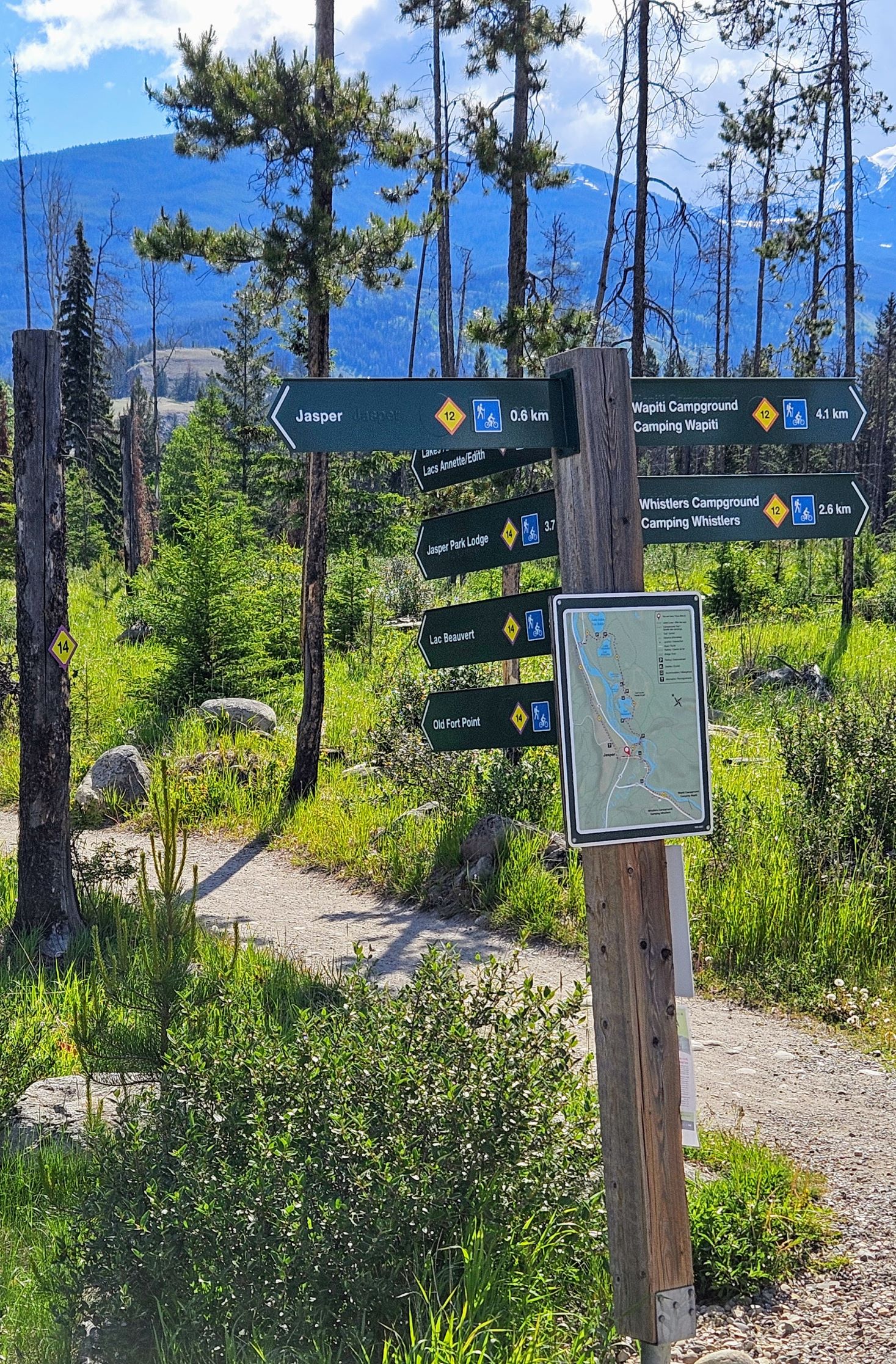 We returned to the Athabasca River, crossed the H.J. Moberly Bridge, and caught the Bighorn/Lakes Trail back to the Jasper Discovery Trail and into downtown.