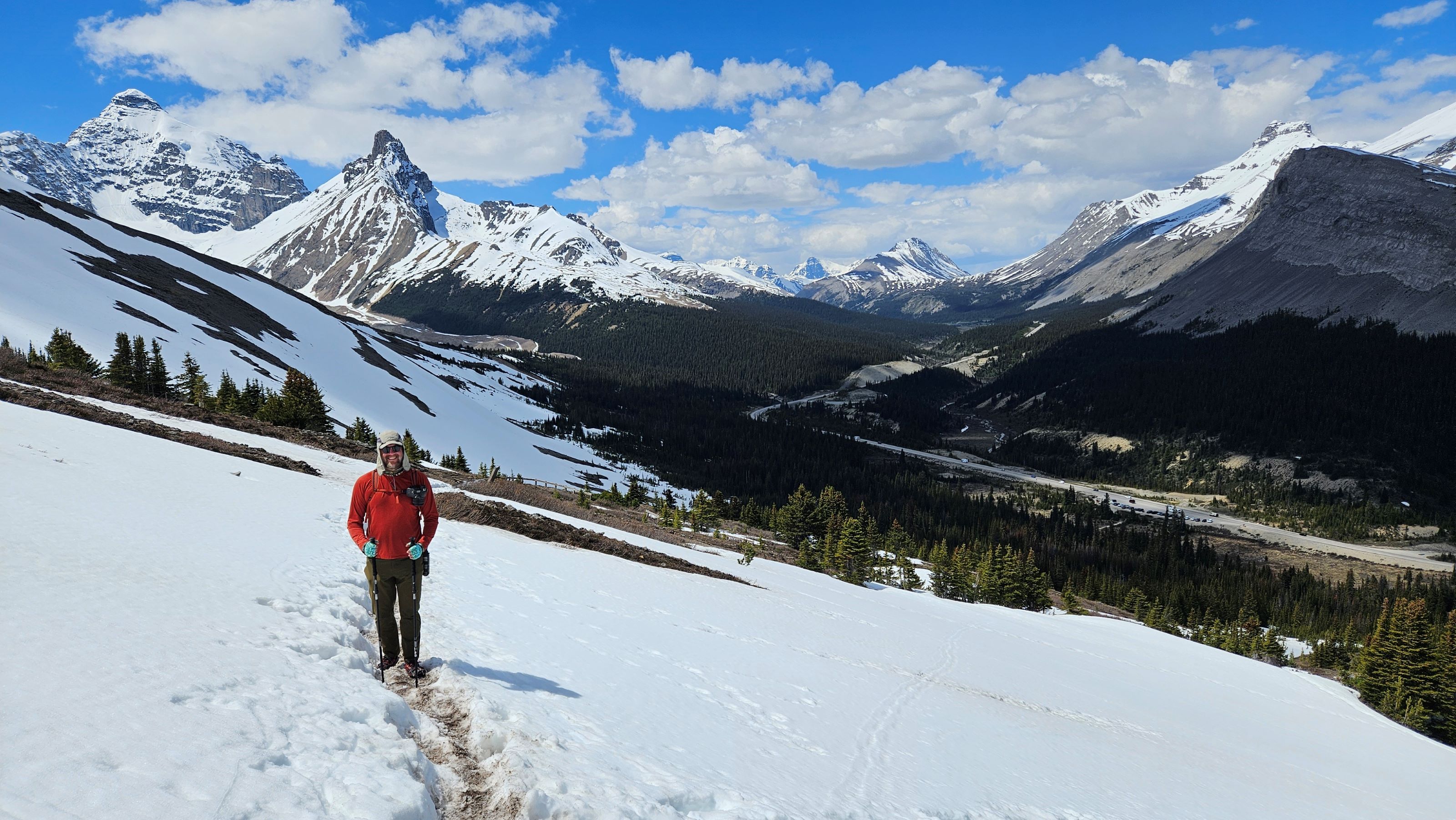 The standout hike of our time in Jasper National Park was ascending the Parker Ridge Trail and hiking out to the viewpoint of the Saskatchewan Glacier. The trailhead is a bit further south on the Icefields Parkway and has ample parking and vault toilets.