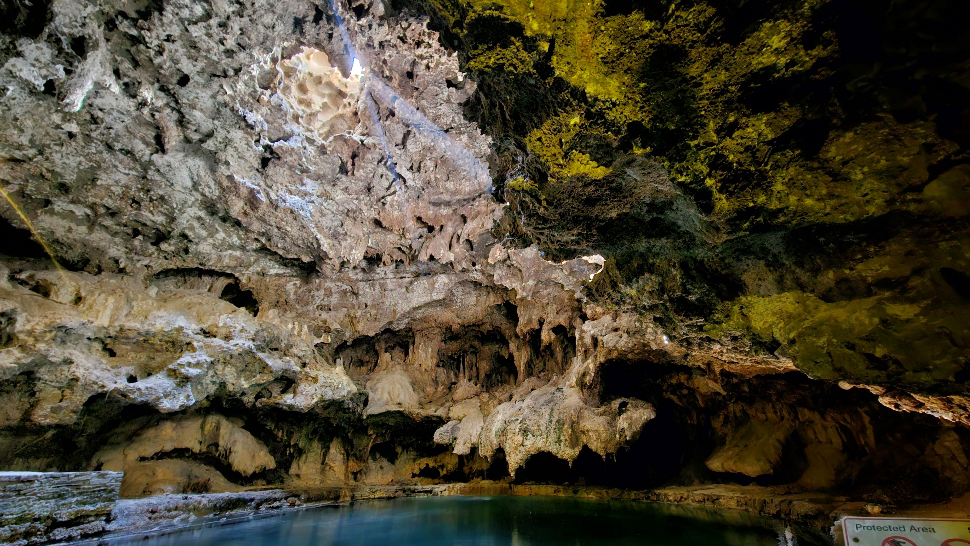 The cave is relatively small with a single opening at the top that lets in natural light. As the information in the rotunda outlined, there are no stalagmites or stalactites because they were removed by earlier users who thought it improved the accessibility and aesthetic.
