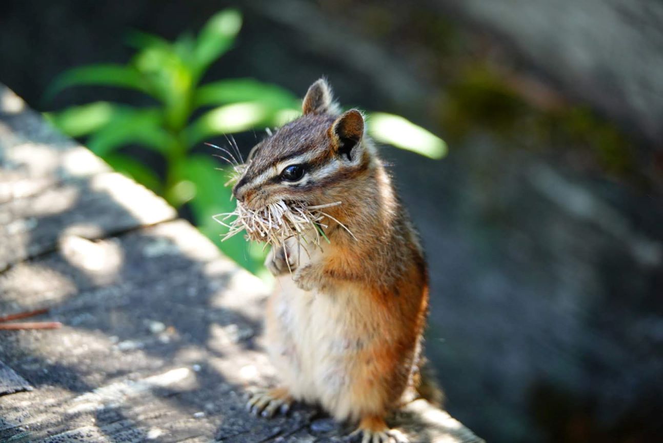 This trail was not well traveled by humans, and we enjoyed wandering through the woods and along the river – with the occasional clearing where we had great views of the nearby mountains – until we ended up back at the parking area. I was hoping we’d see some wildlife, and we did – in the form of a chipmunk!