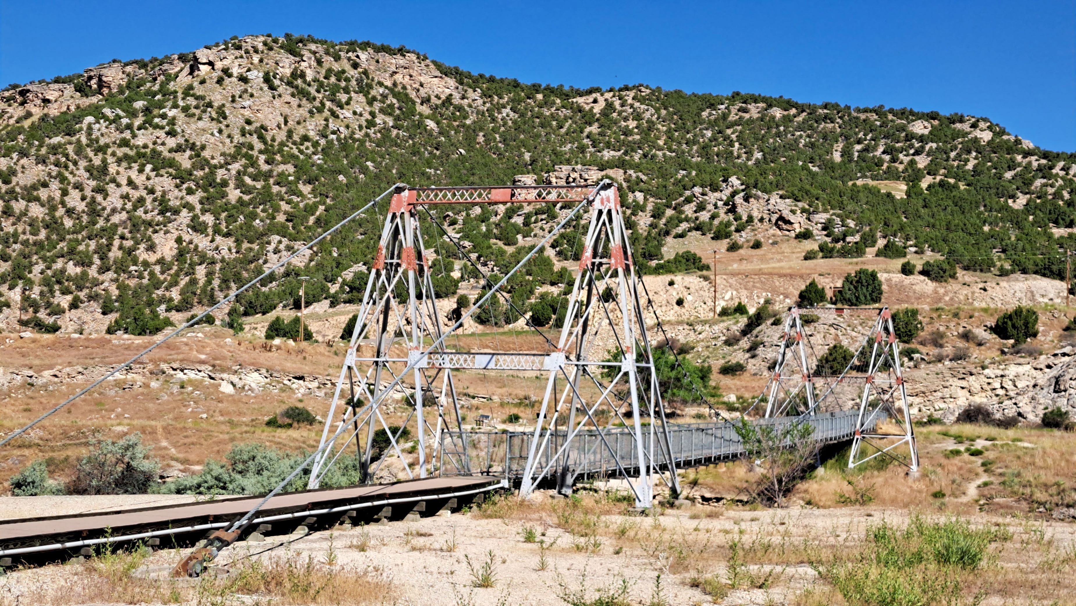 We enjoyed our walk across the bridge, which has nice views of the river, mineral hot springs, and nearby foothills. The opposite bank had some trails I would like to explore during our next (hopefully cooler) visit.
