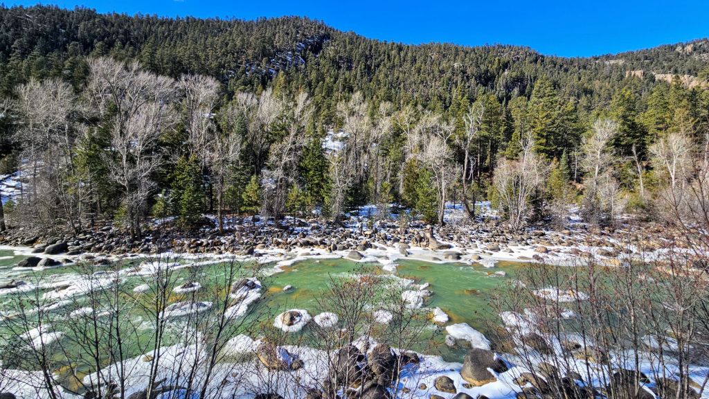 As we headed north, the town faded away and we followed the Animas River. The route continued to climb and, although there wasn’t much snow, the views were very nice.