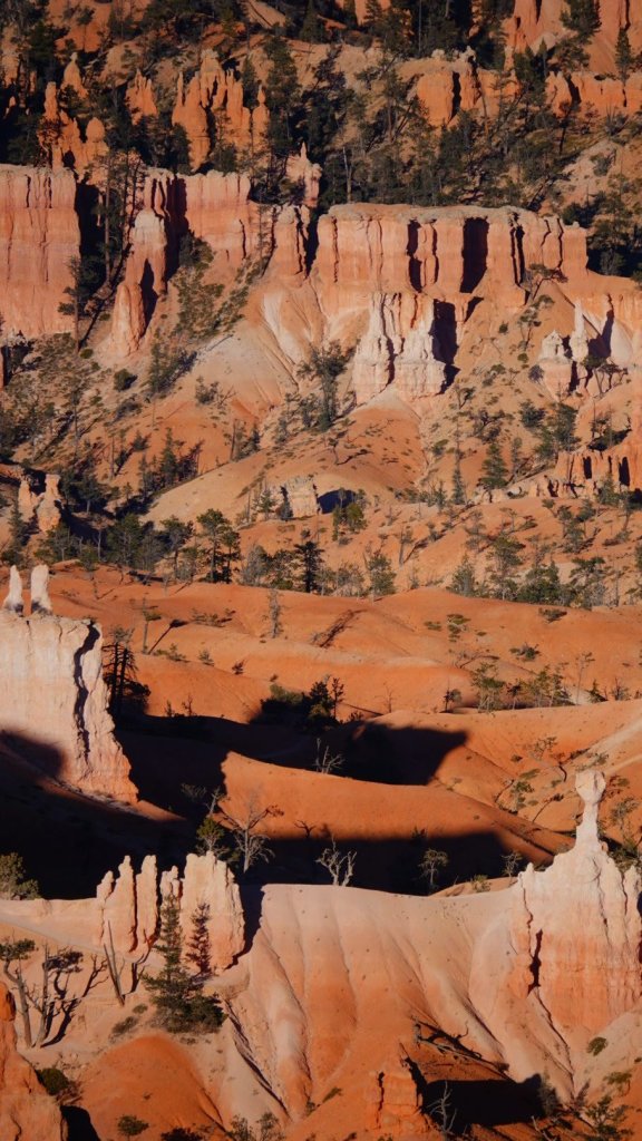 We drove from the visitor center out to Rainbow Point – the scenic drive terminus – and then briefly stopped at each overlook as we made our way back to the park entrance. The sun was setting, making the red rocks and hoodoos glow, and we had clear, panoramic views across the canyon.